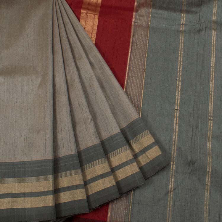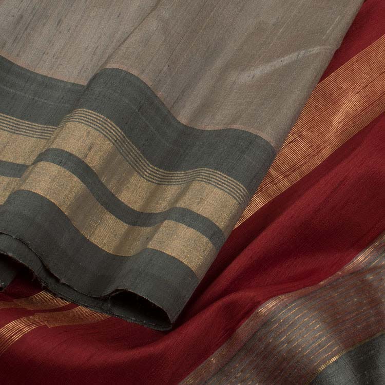 Handwoven Kanchipuram Dupion Silk Saree with Striped Pallu 10045764