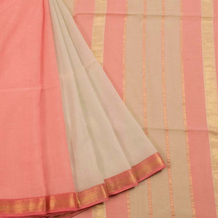 Handwoven Maheshwari Half and Half Cotton Saree with Zari Border 10046761