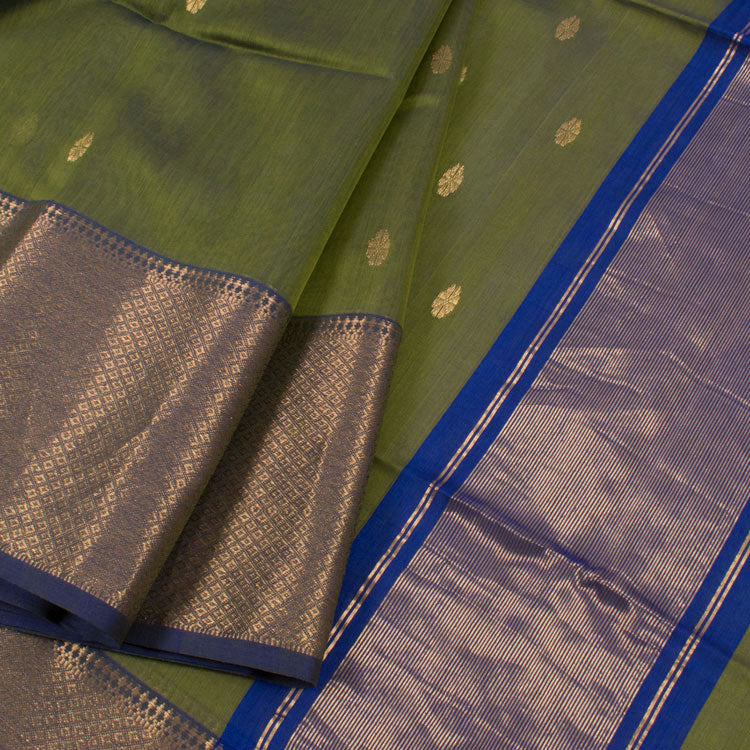 Handwoven Maheshwari Silk Cotton Saree with Floral Motifs and Heera Zari Border 10051937