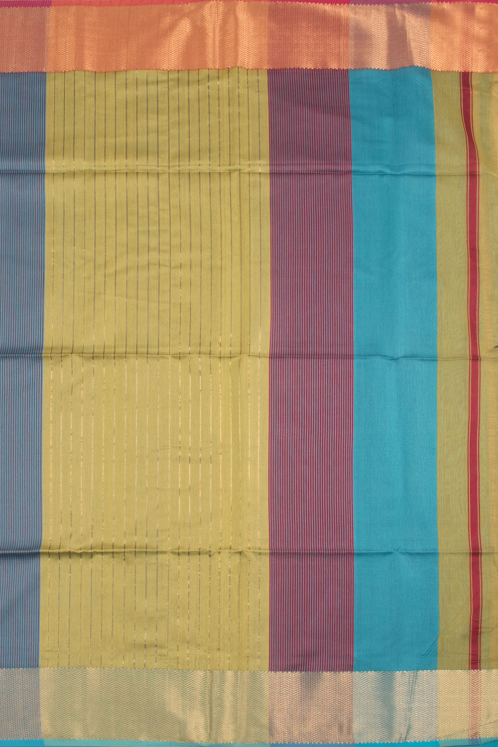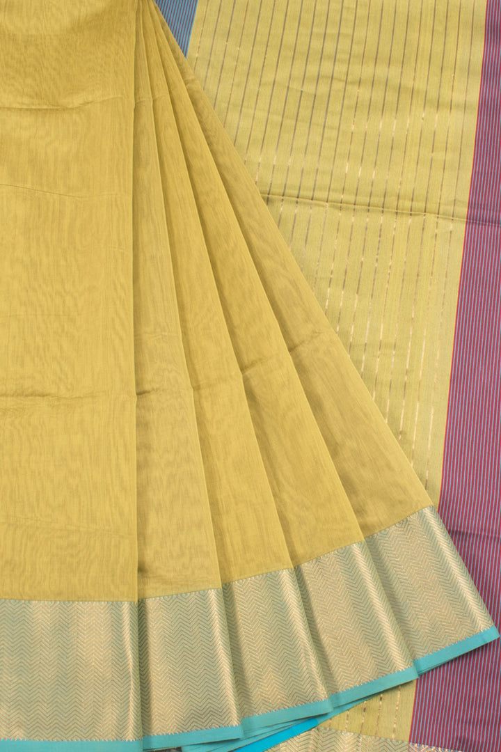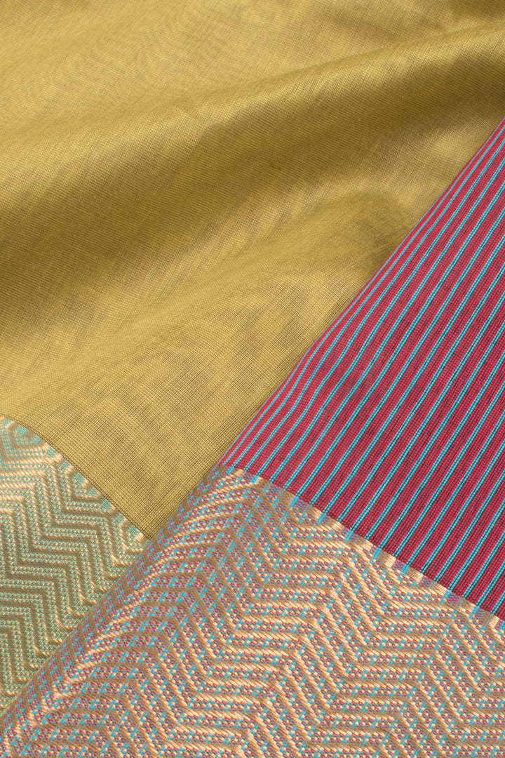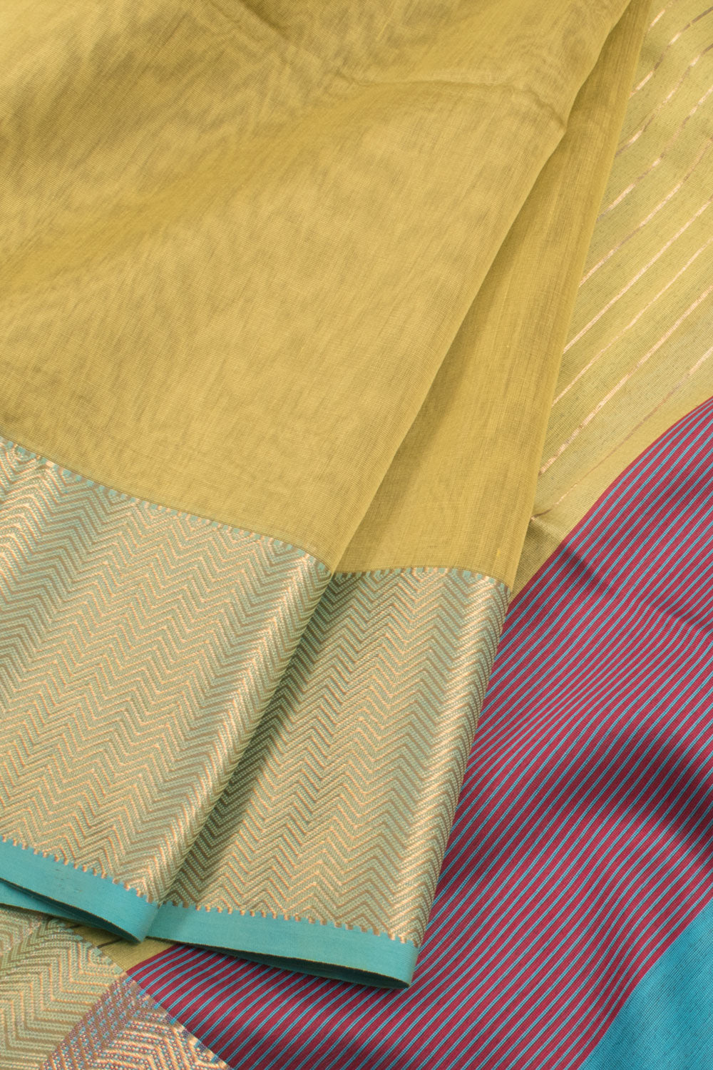 Handloom Maheshwari Silk Cotton Saree with Chevron Ganga Jamuna Border 10058821