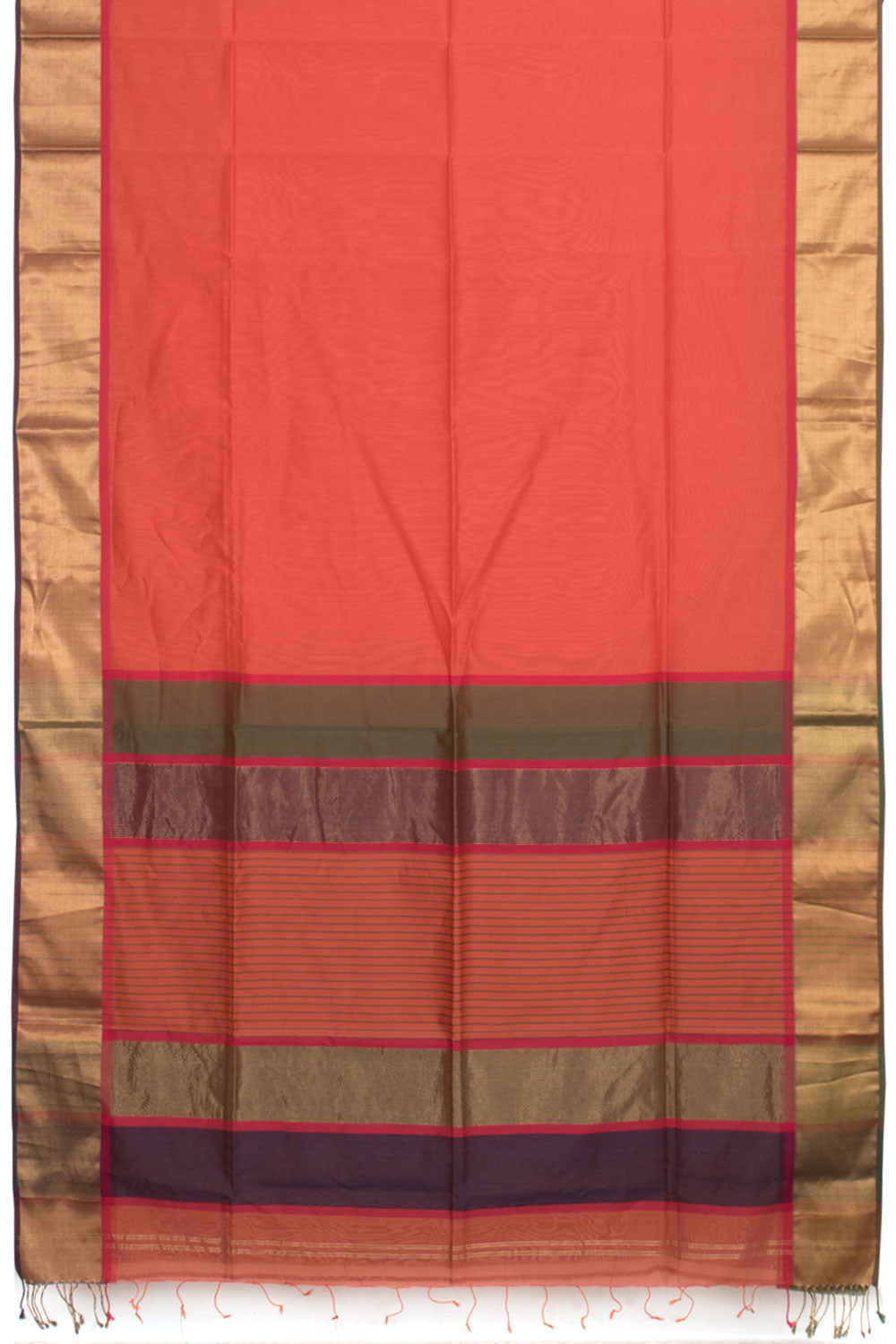 Handloom Maheshwari Silk Cotton Saree with Zari Border 10058825