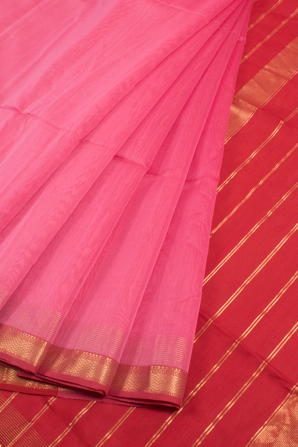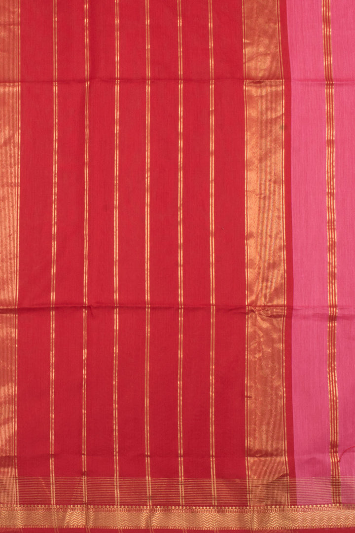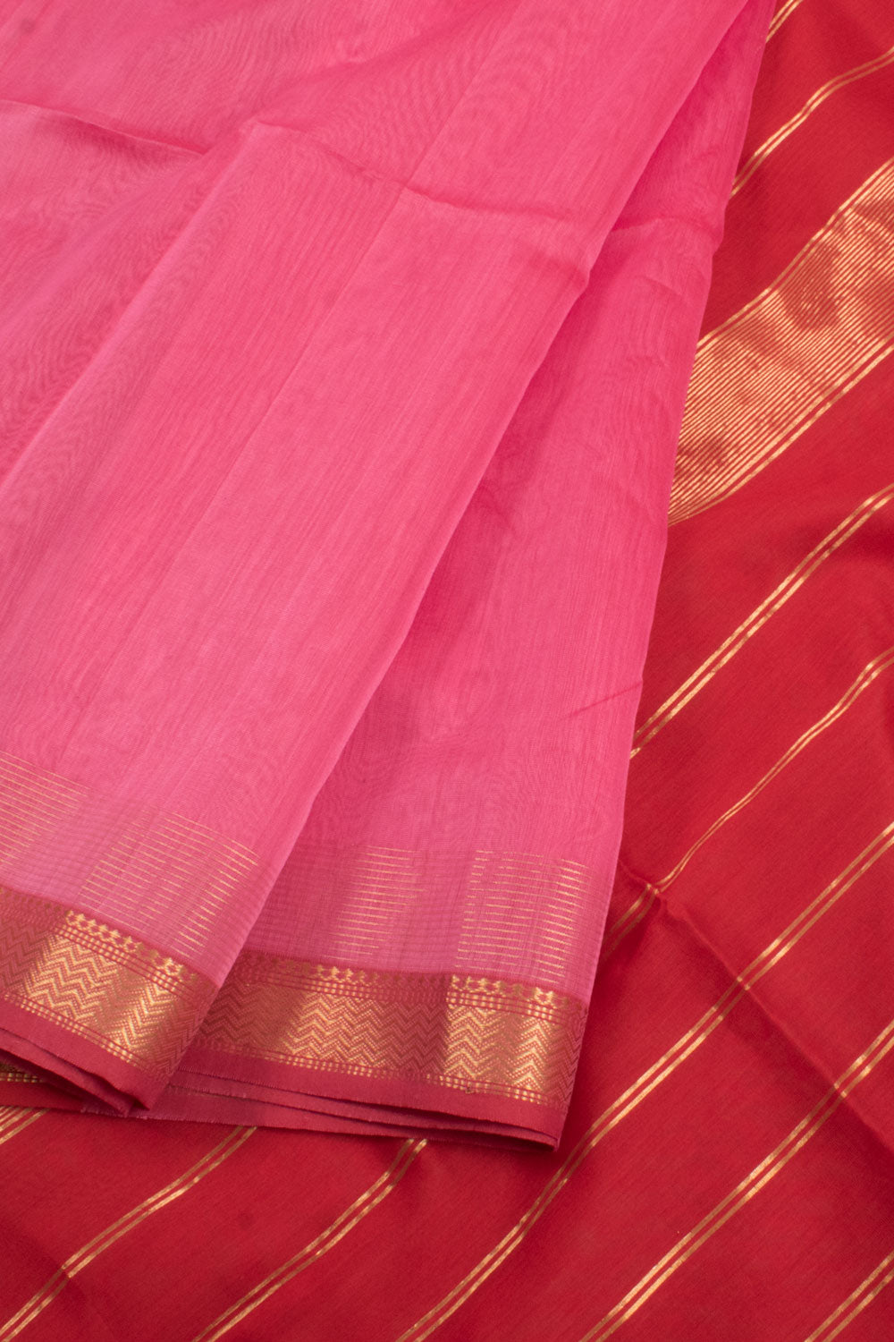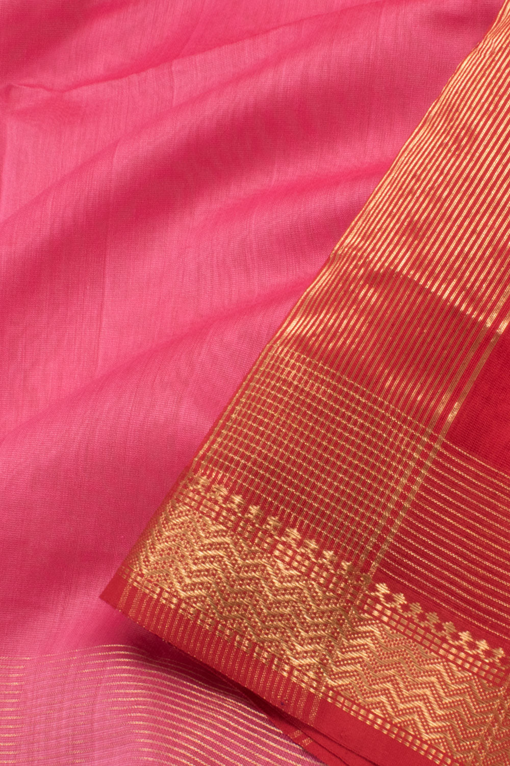 Handloom Maheshwari Silk Cotton Saree with Chevron Zari Border 10058827