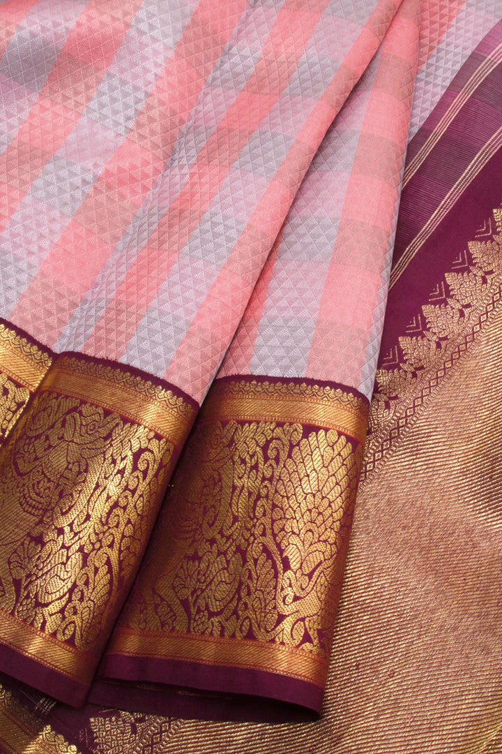 Pink and Grey Pure Zari Jacquard Korvai Kanjivaram Silk Saree 10062466