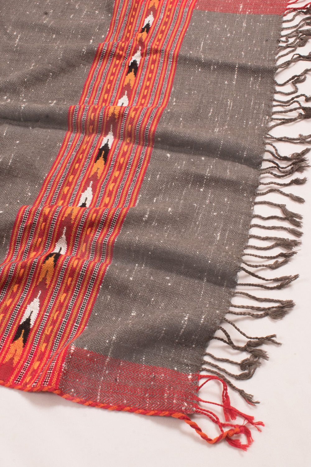 Handloom Woolen Stole with Contrast Kullu Border 10058681