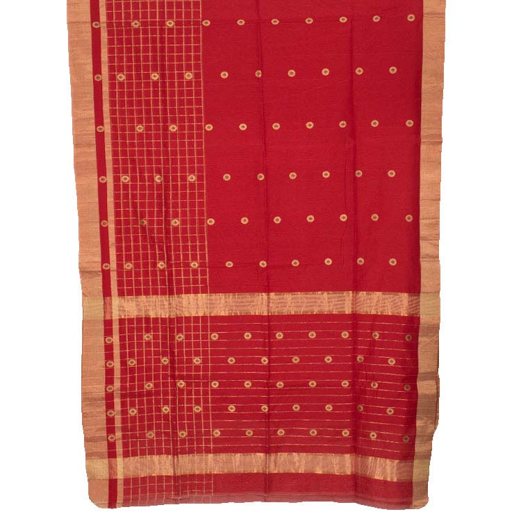 Handwoven Chanderi Saree with Floral Motifs and Zari Border 10042254