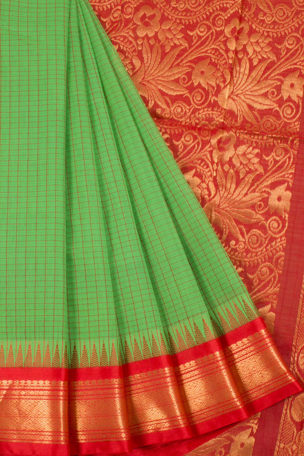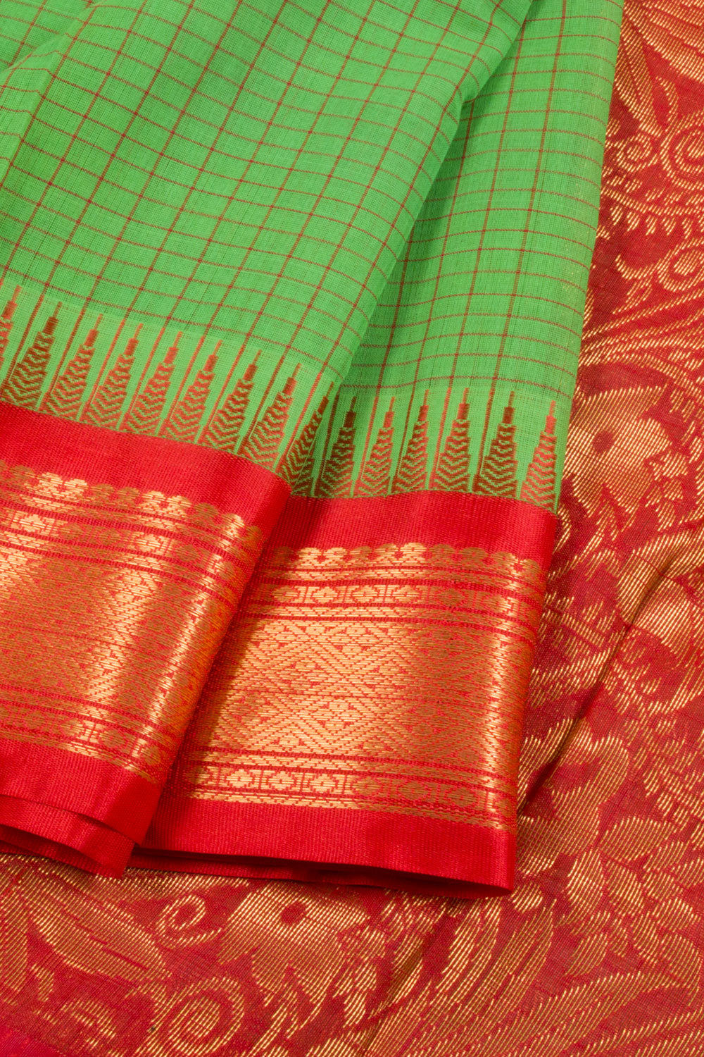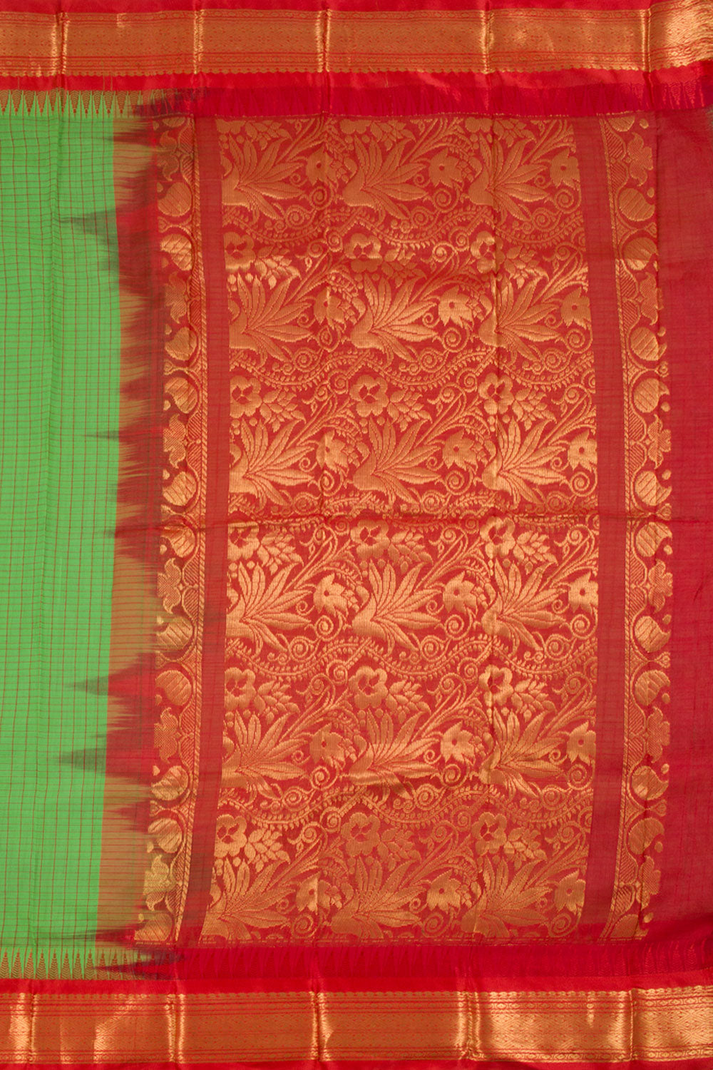 Mantis Green Handwoven Gadwal Kuttu Cotton Saree 10061430