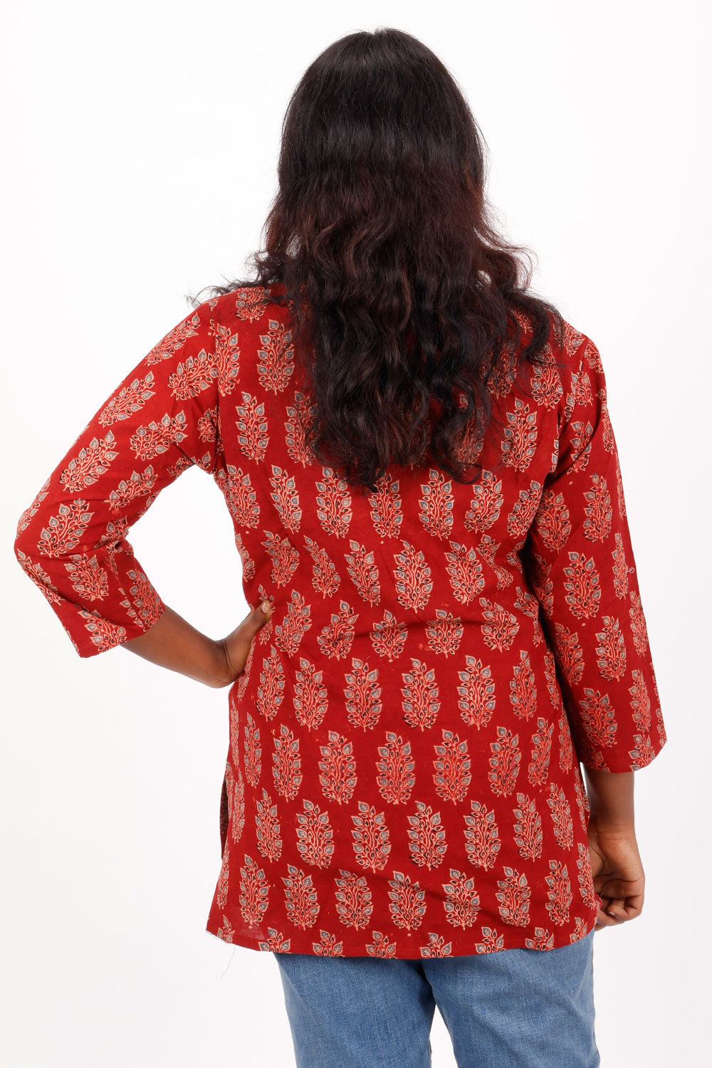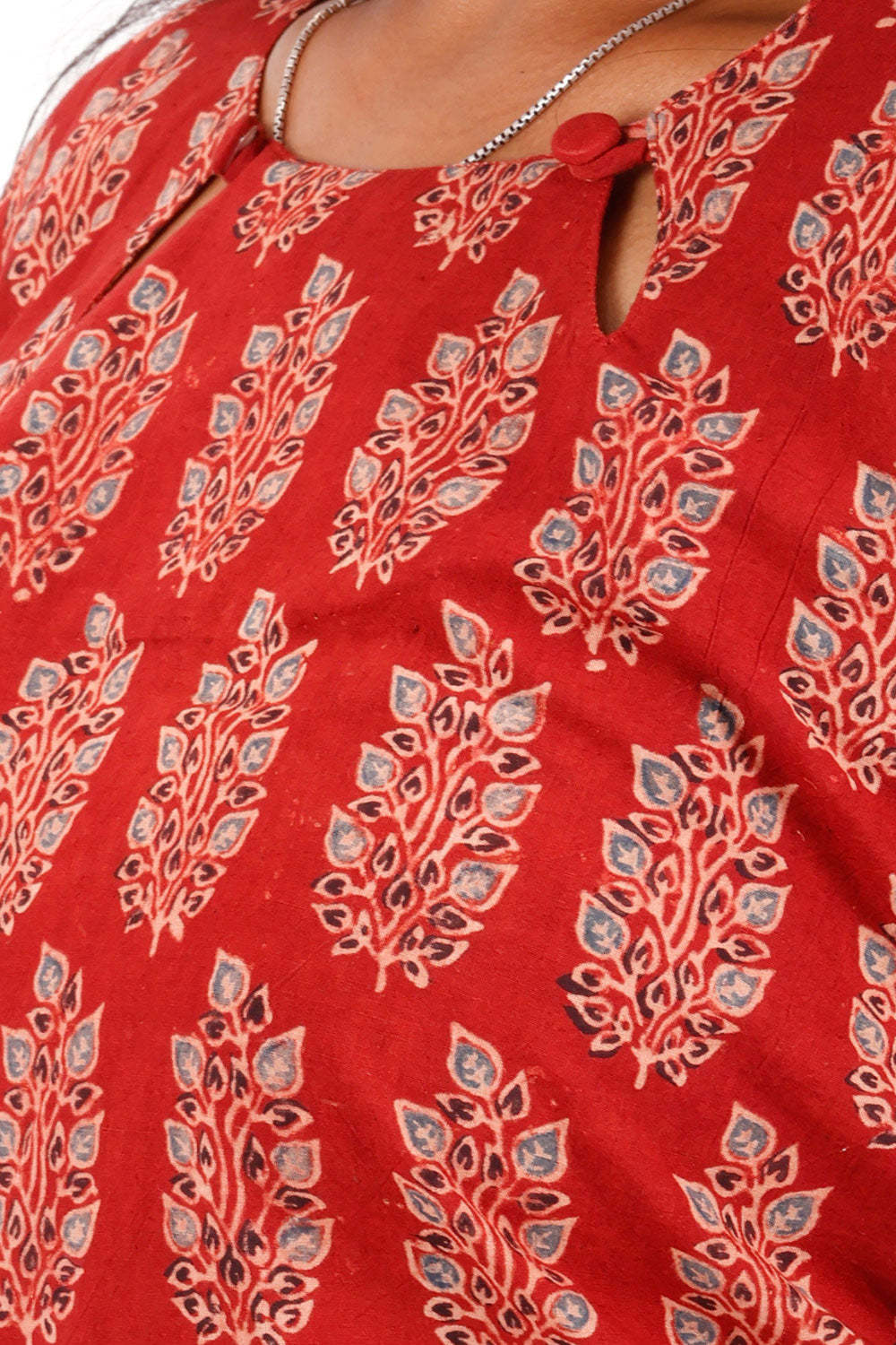 Imperial Red Ajrakh Printed Cotton Kurti 10072050
