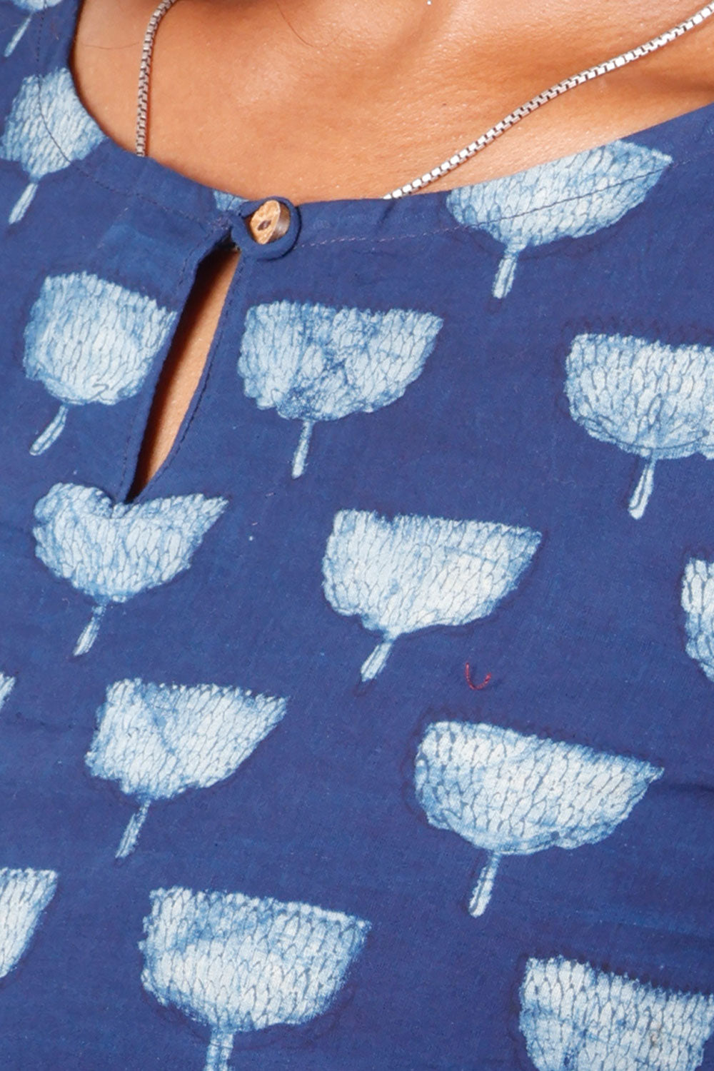 Indigo Bouquet Motifs Hand Block Printed Cotton Kurti 10072372