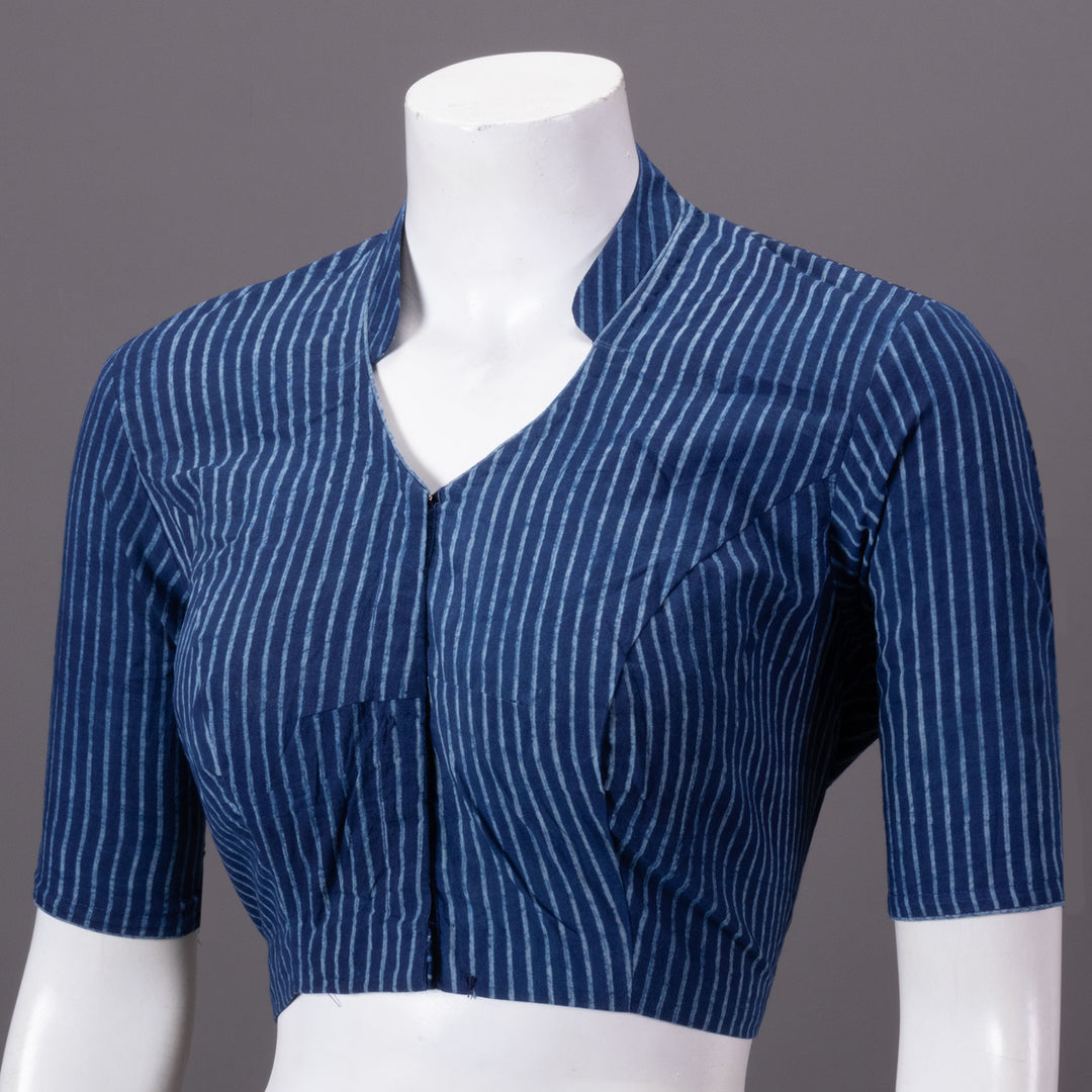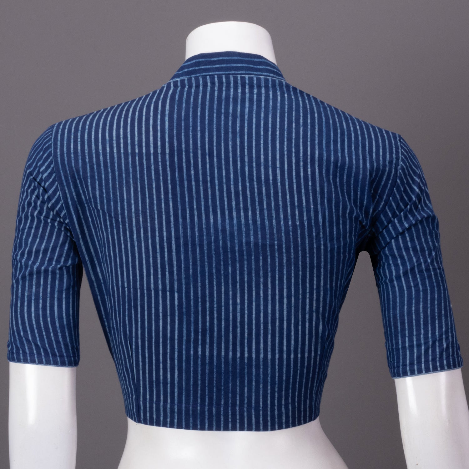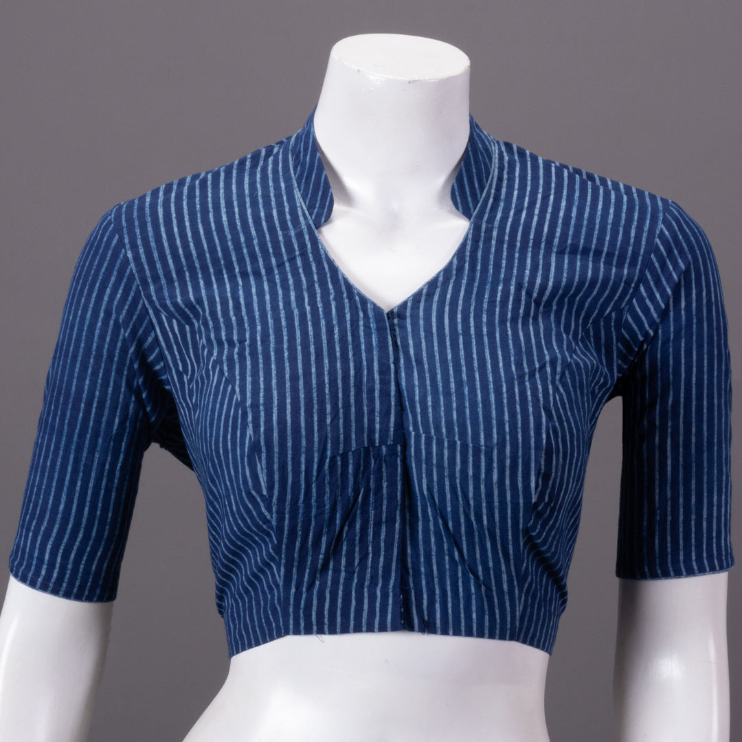 Indigo Hand Block Printed Cotton Blouse 10073282