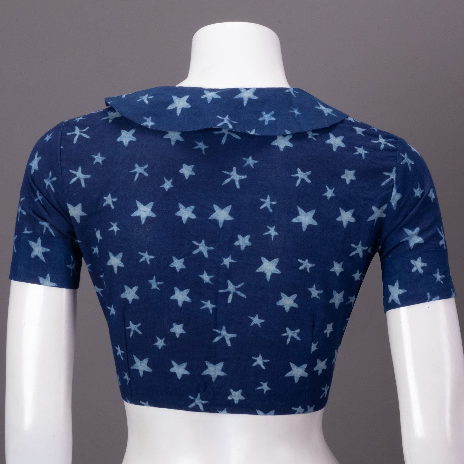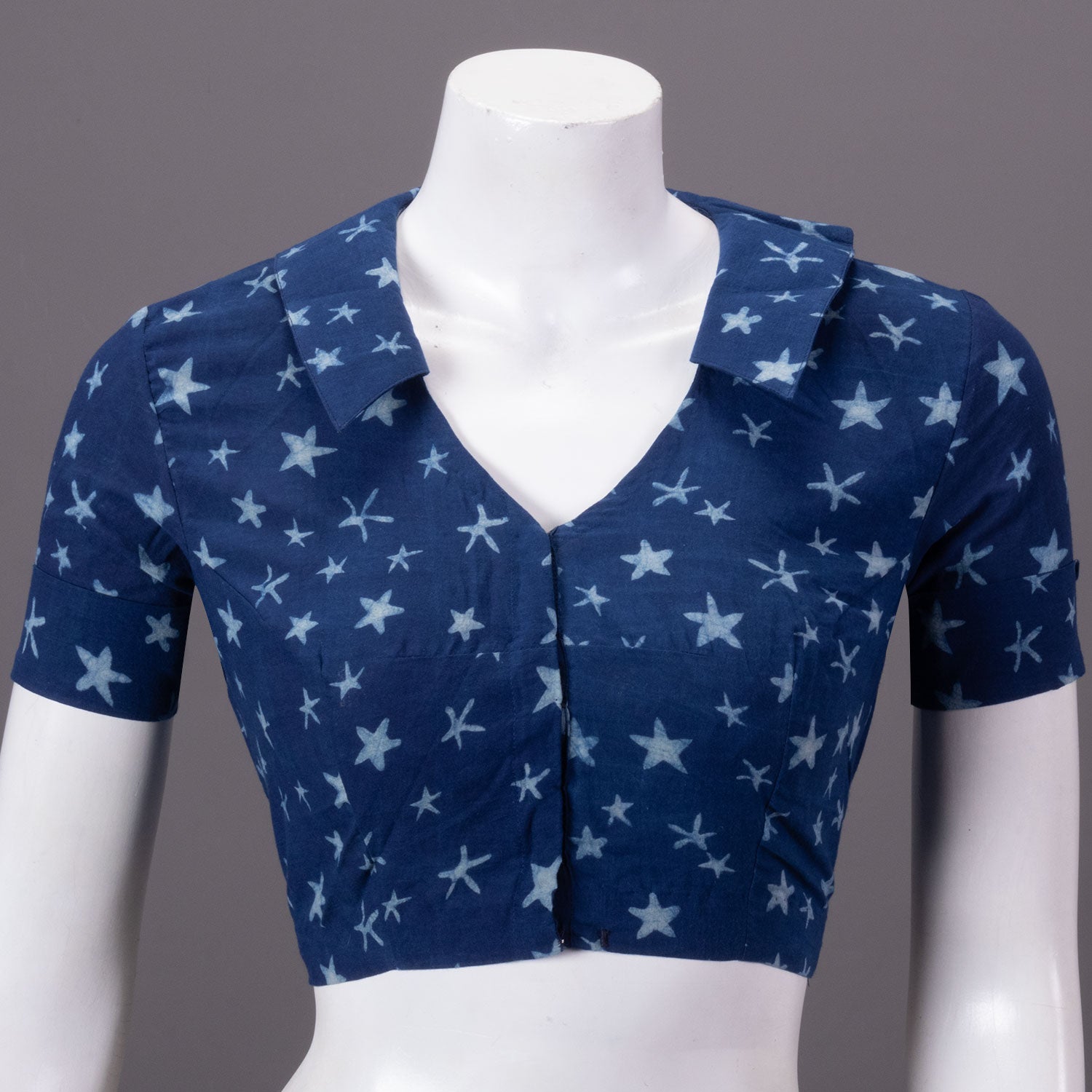 Indigo Hand Block Printed Cotton Blouse 10073291