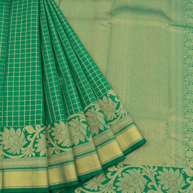 Handloom Pure Zari Kanjivaram Silk Saree with checks and floral motifs 10037922x