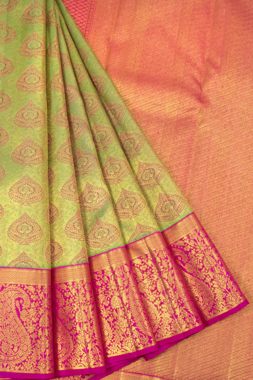 Light Olive Green Pure Zari Jacquard Kanjivaram Silk Saree 10063088