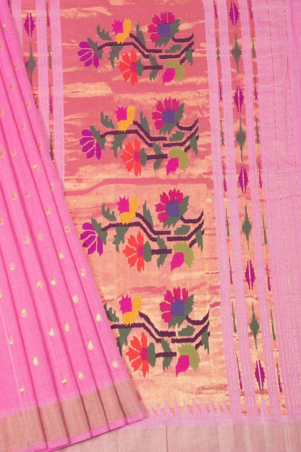 Light Pink Handloom Paithani Cotton Saree 10064576