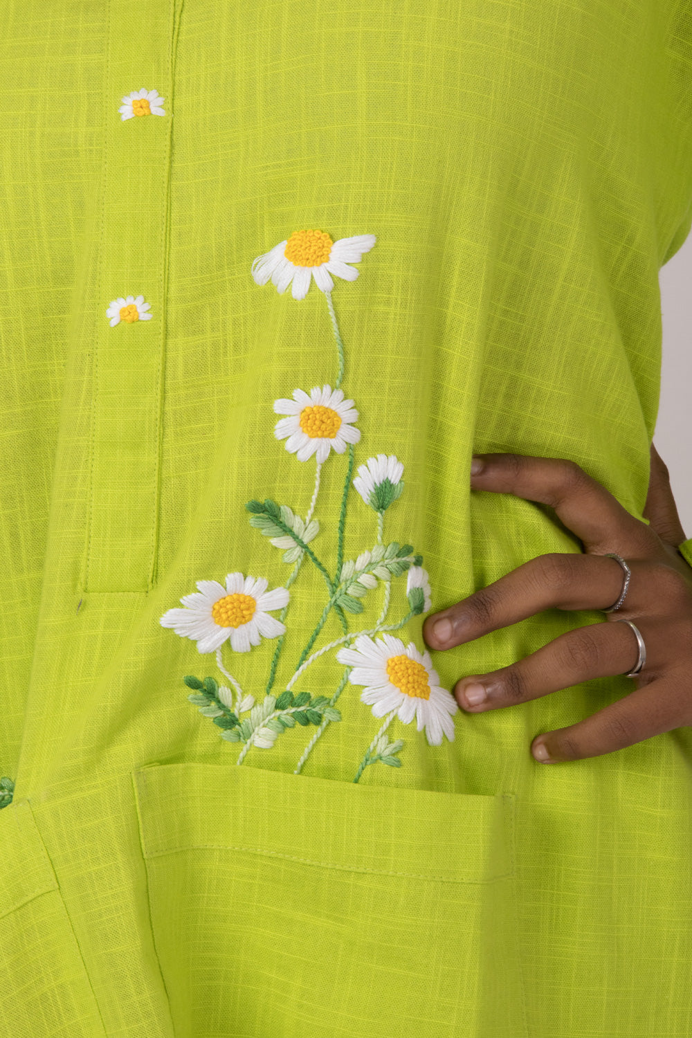Experience the perfect combination of style and comfort with our Lime Green Hand Embroidered Cotton Co-ord Set! Made from high-quality cotton, this set features exquisite hand embroidery that adds a touch of elegance. Whether worn together or separately, this versatile set is a must-have in your wardrobe.