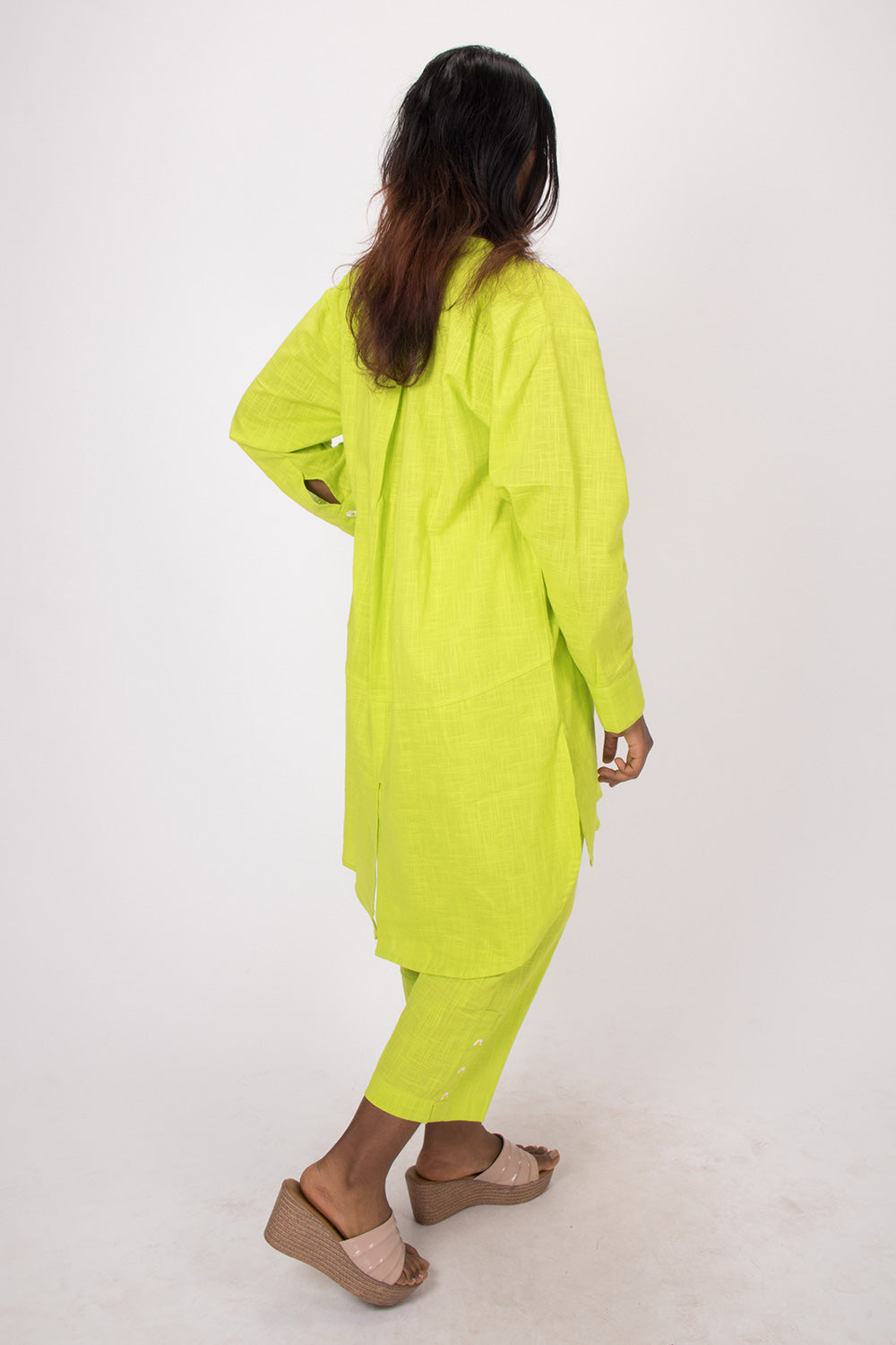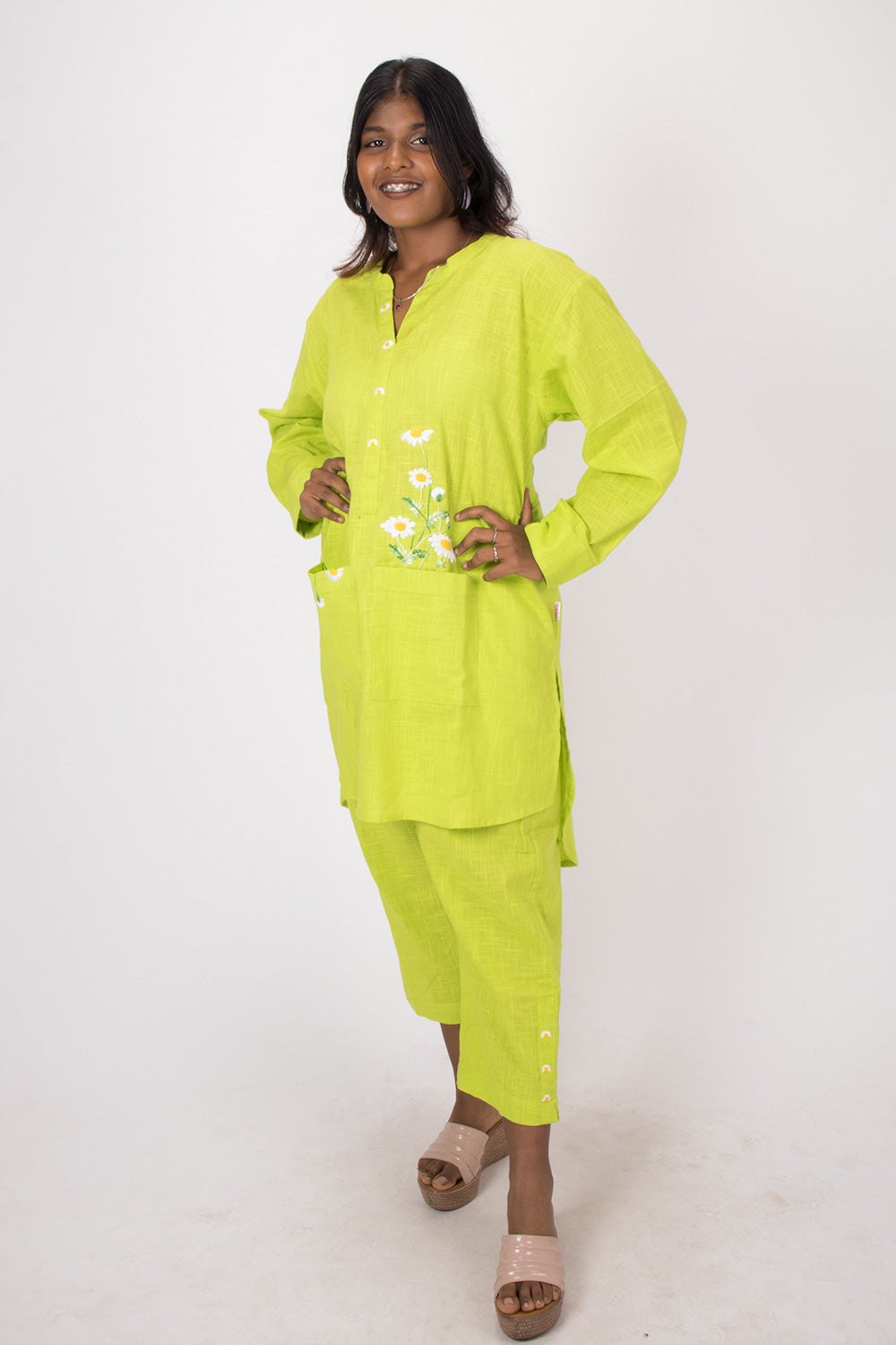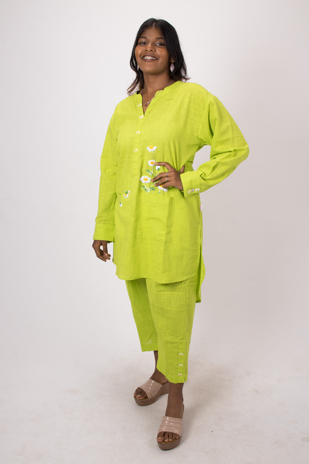 Lime Green Handcrafted Cotton Co-ord Set 10071219