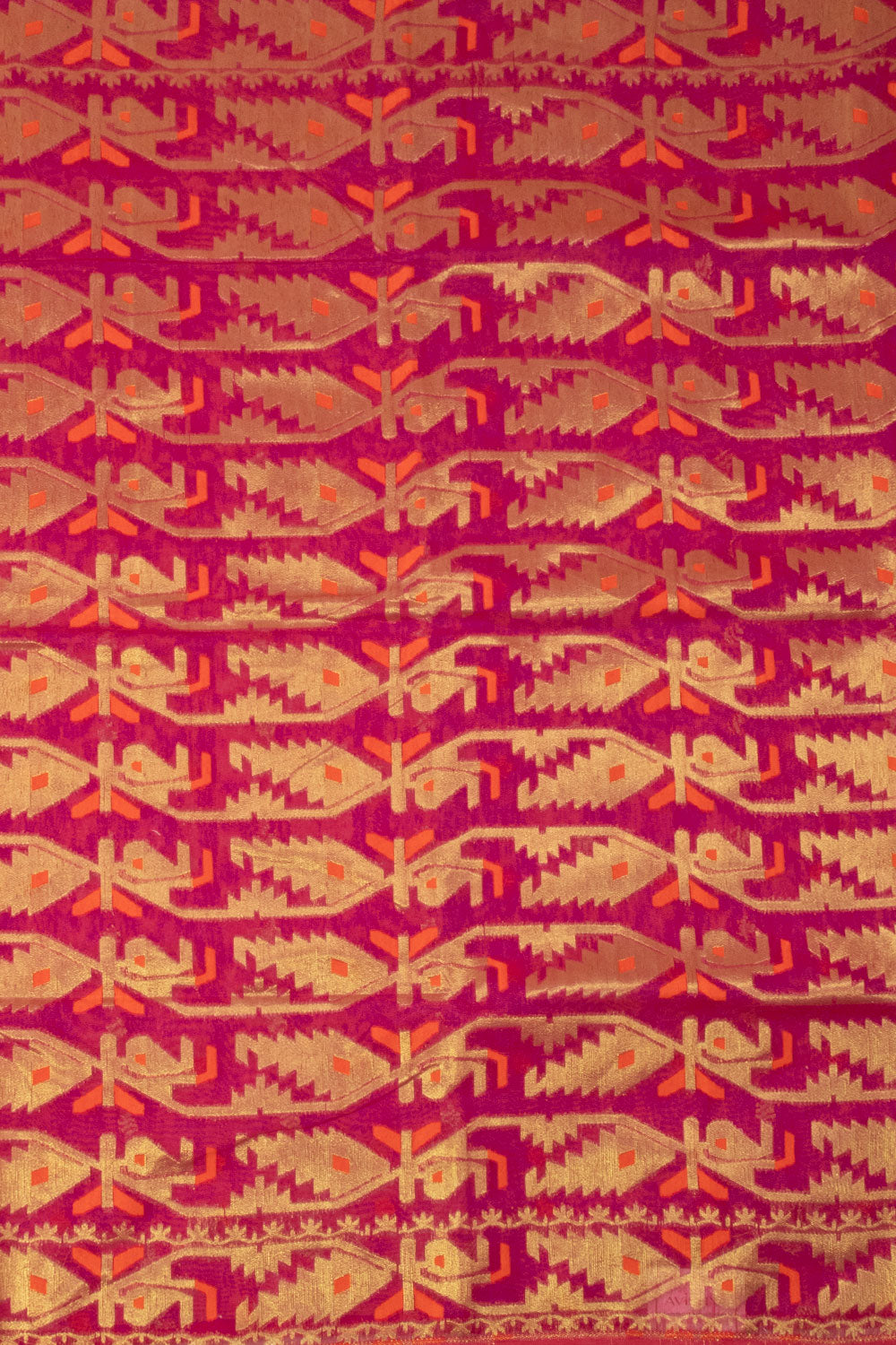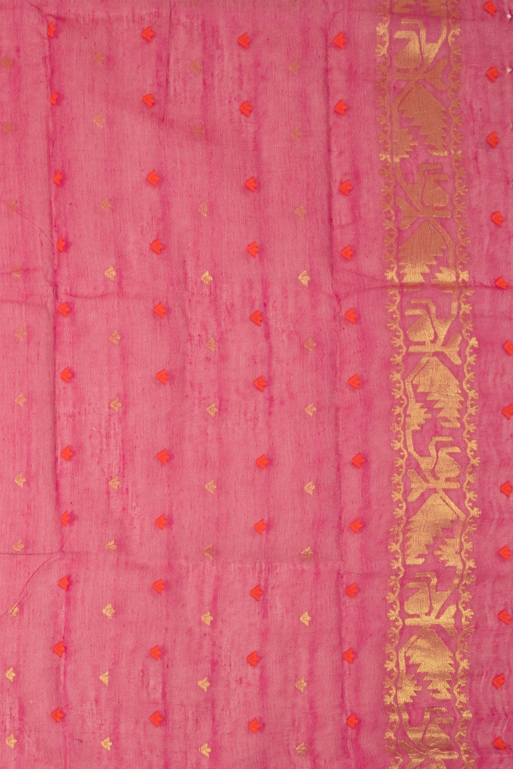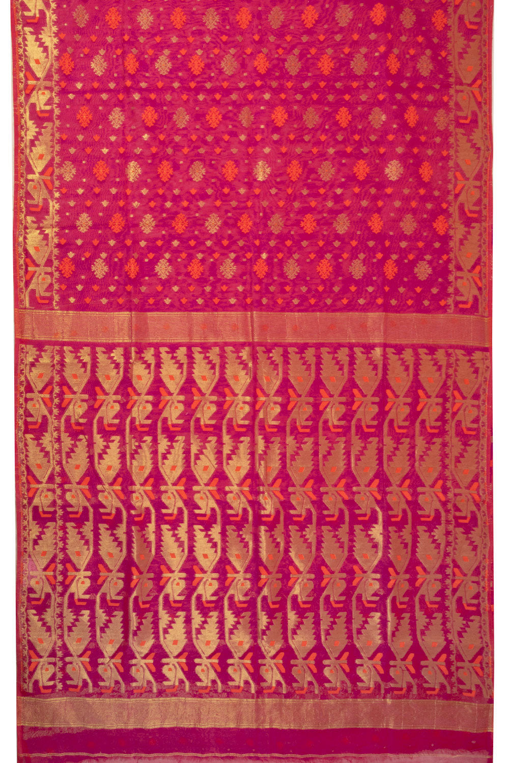 Magenta Handloom Jamdani Style Cotton Saree with Blouse 10074219