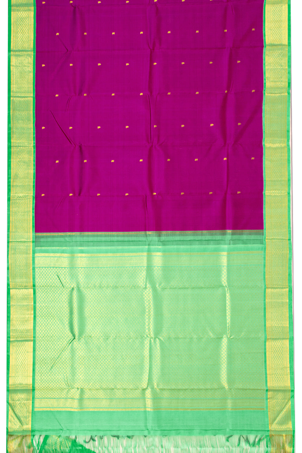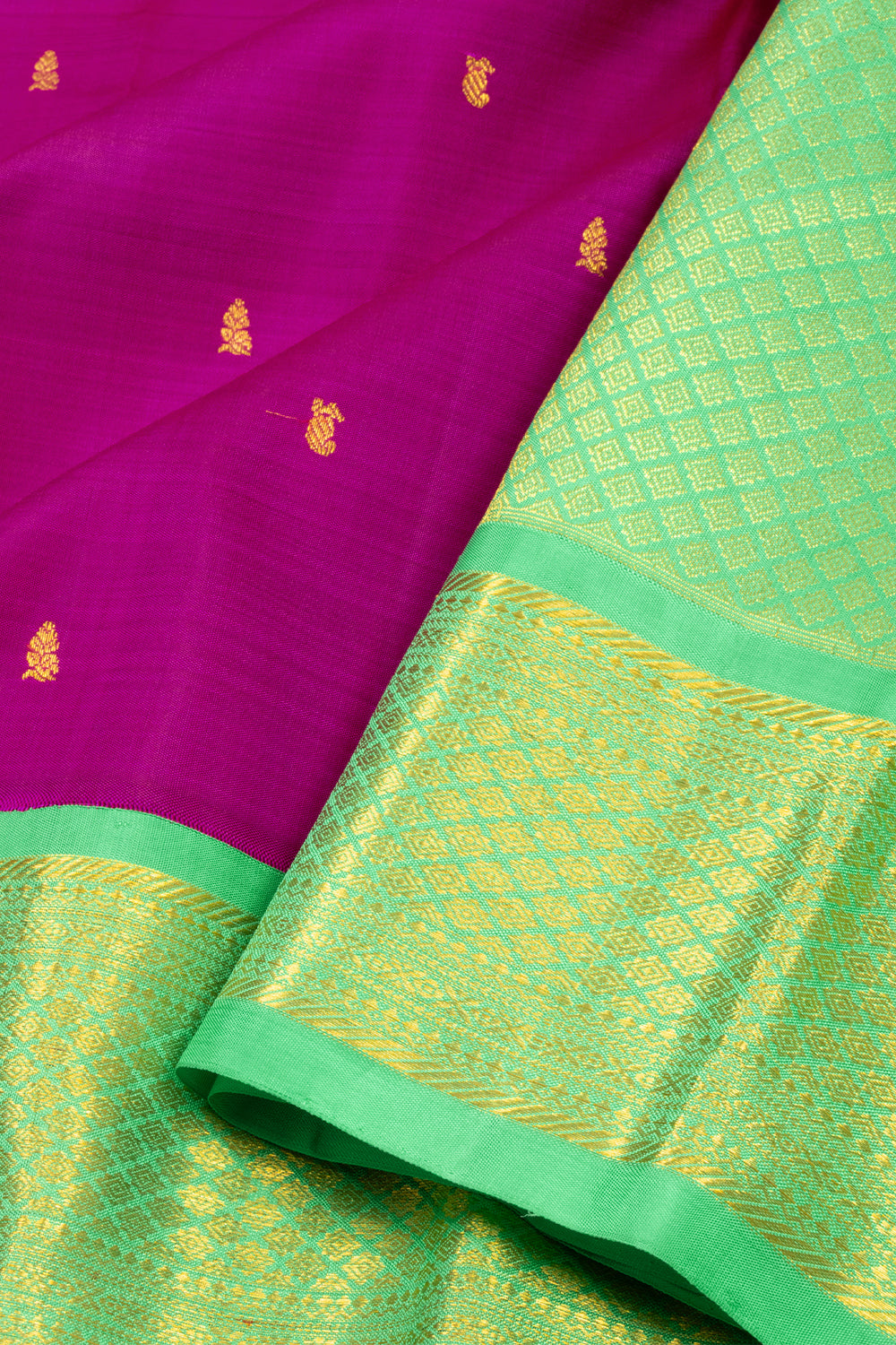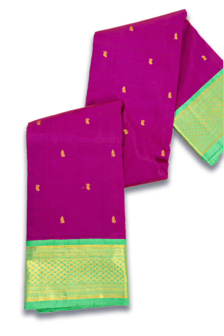 - Rich Color Contrasts – Signature Kanjivaram style featuring deep, bold hues.
