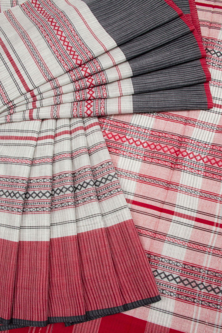 White Handloom Dhaniakhali Cotton Saree 10062574