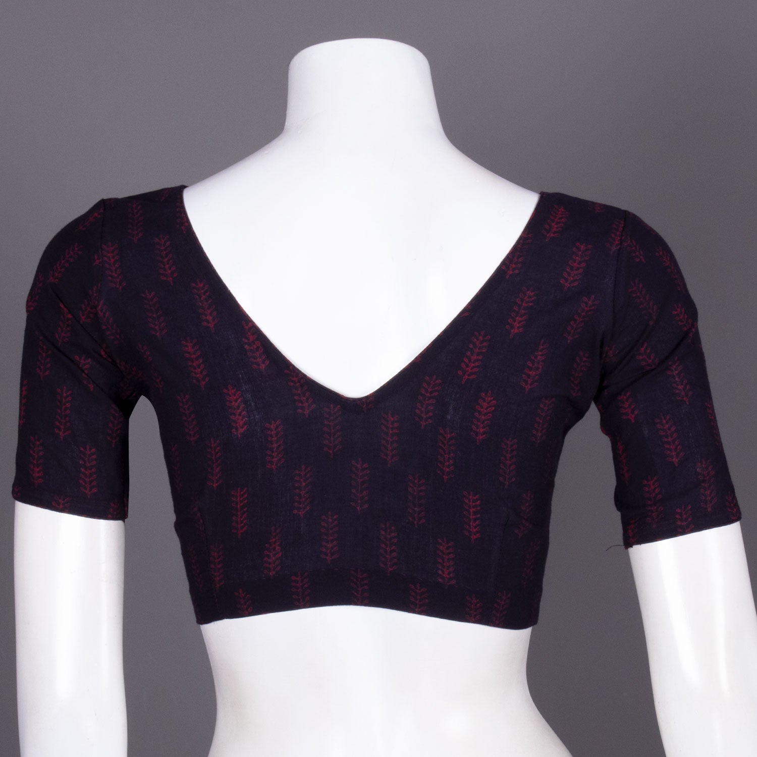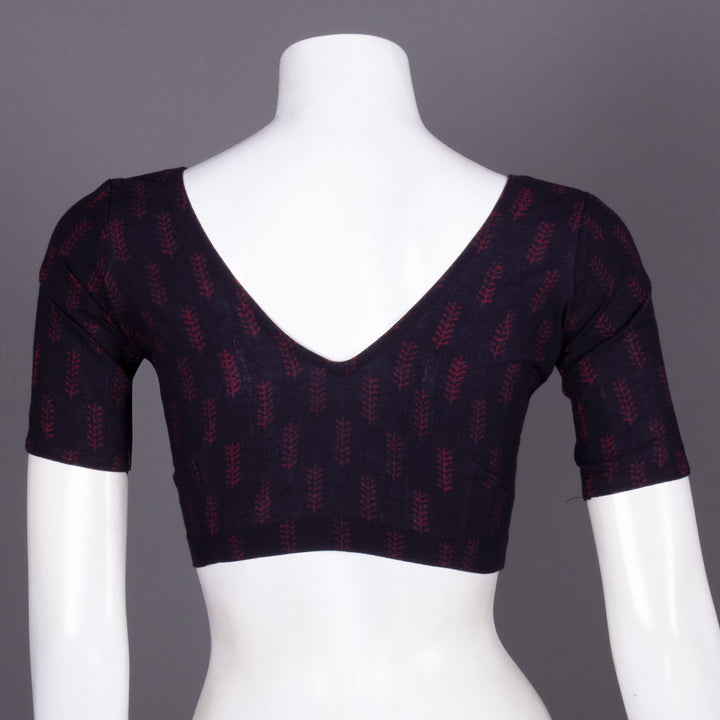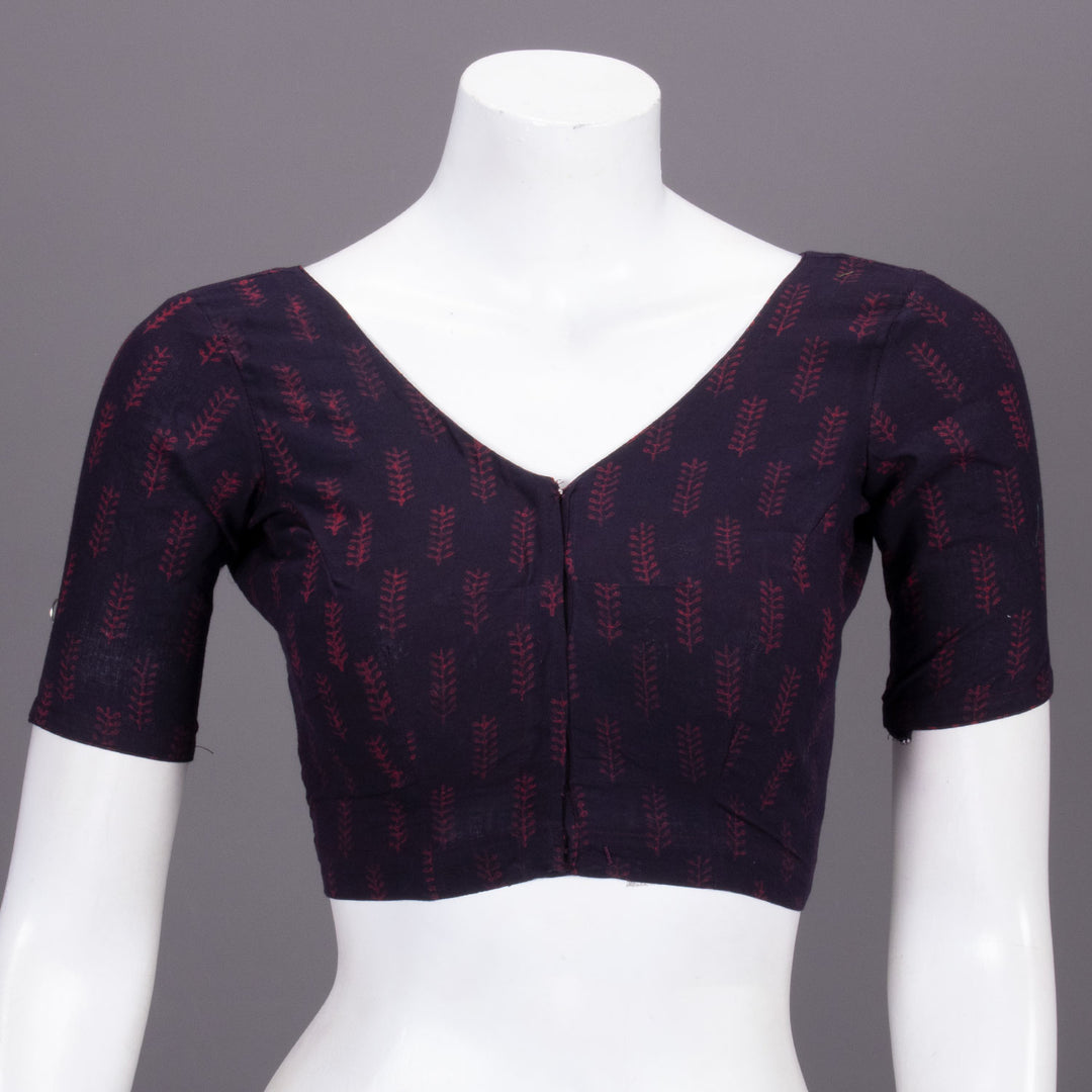 Maroon Floral Motif Indigo Hand Block Print Cotton Blouse 10074600