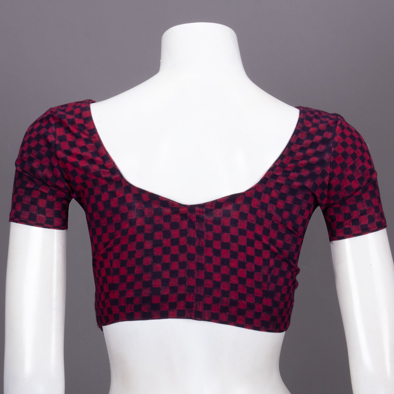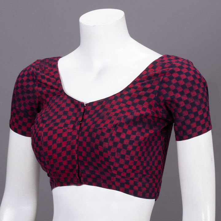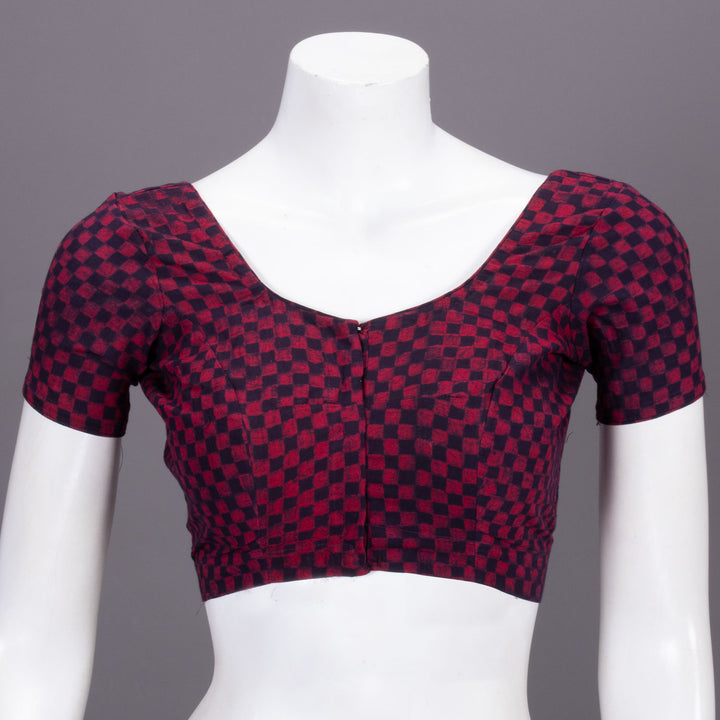 Maroon Geometric Motif Indigo Hand Block Print Cotton Blouse 10074604