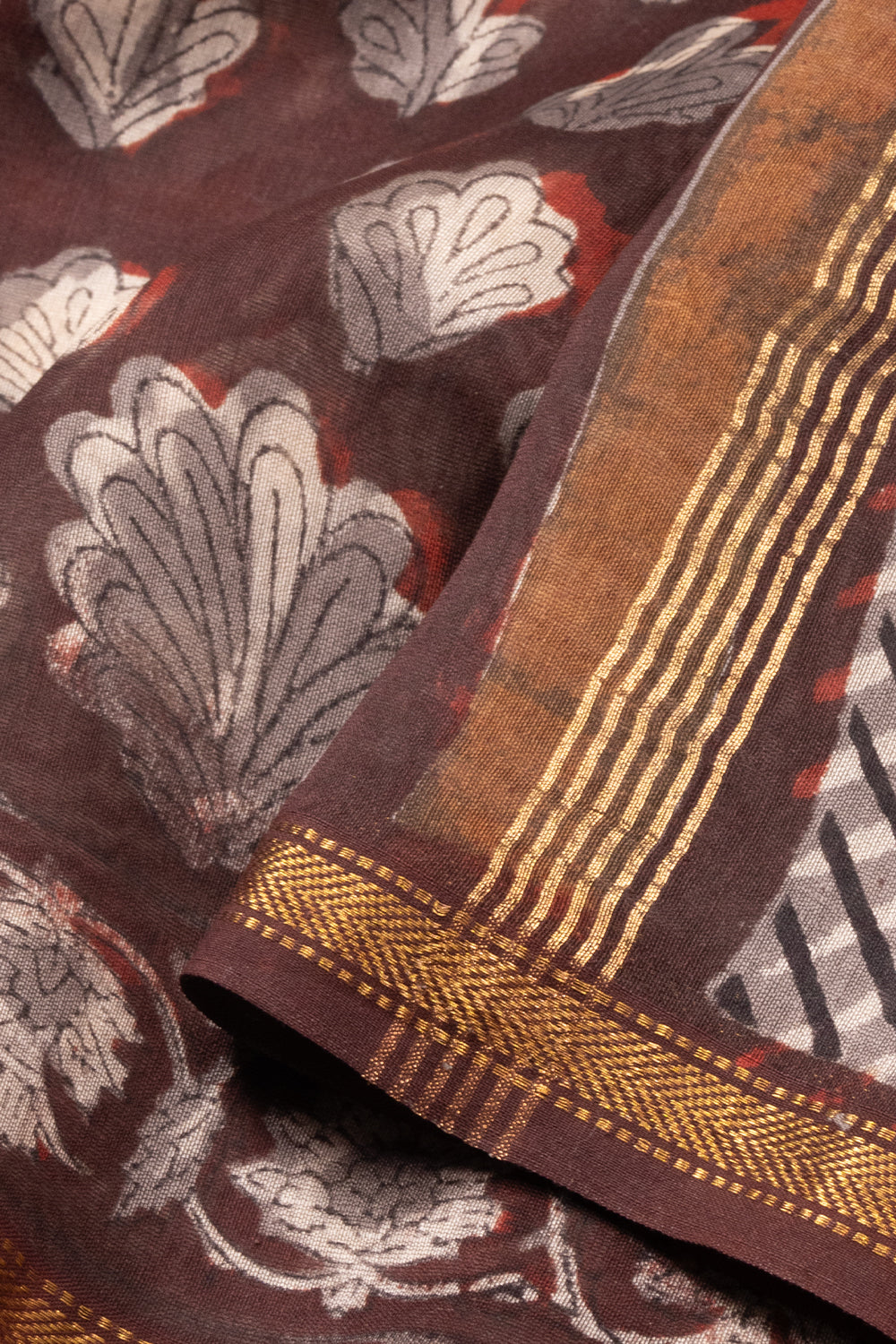 Maroon Jahota Printed Silk Cotton Saree 10072957