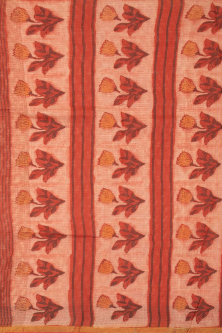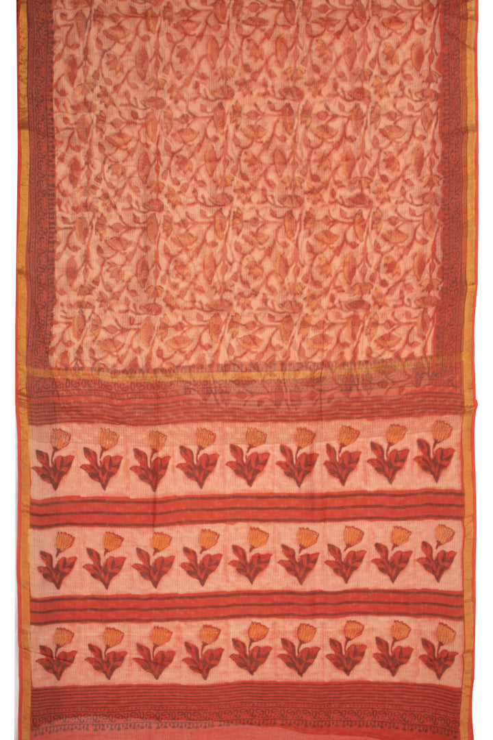 Melon Pink Vanaspathi Print Kota Cotton Saree 10074196