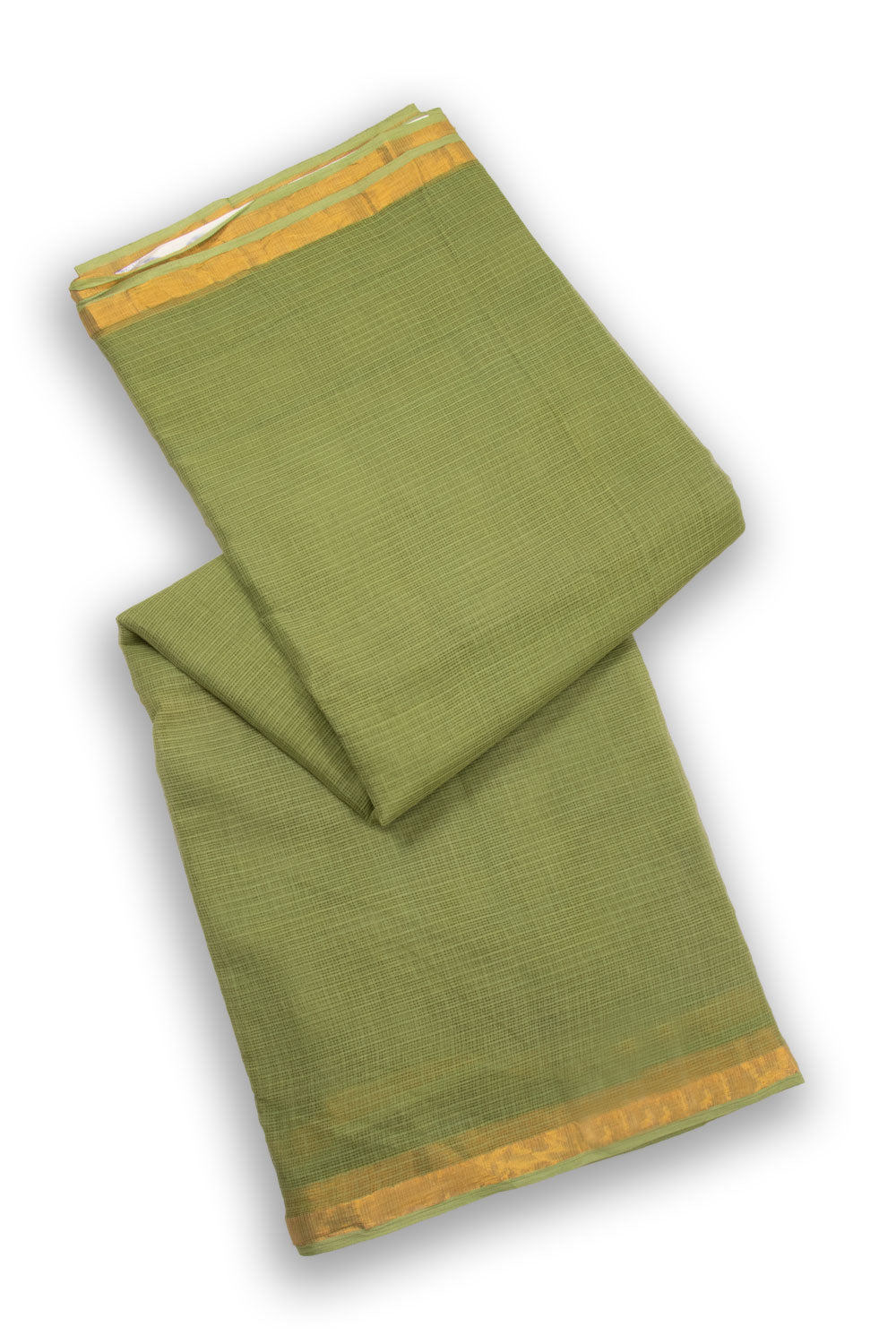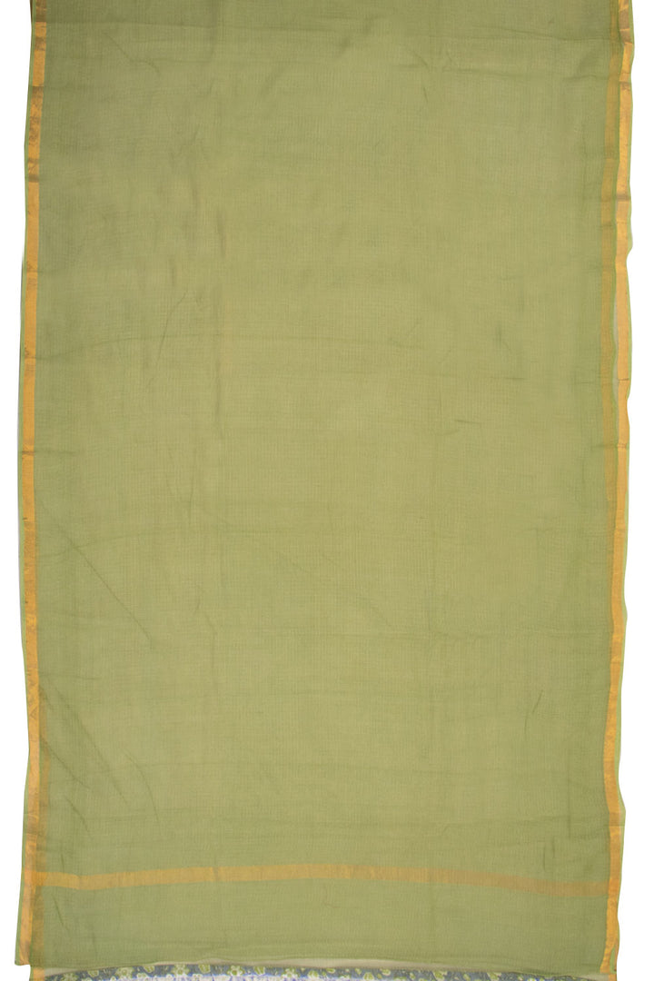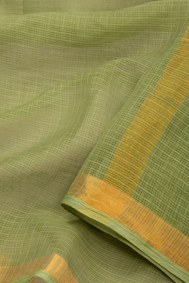 Moss Green Solid Style Kota Cotton Saree with Contrast Blouse 10074187