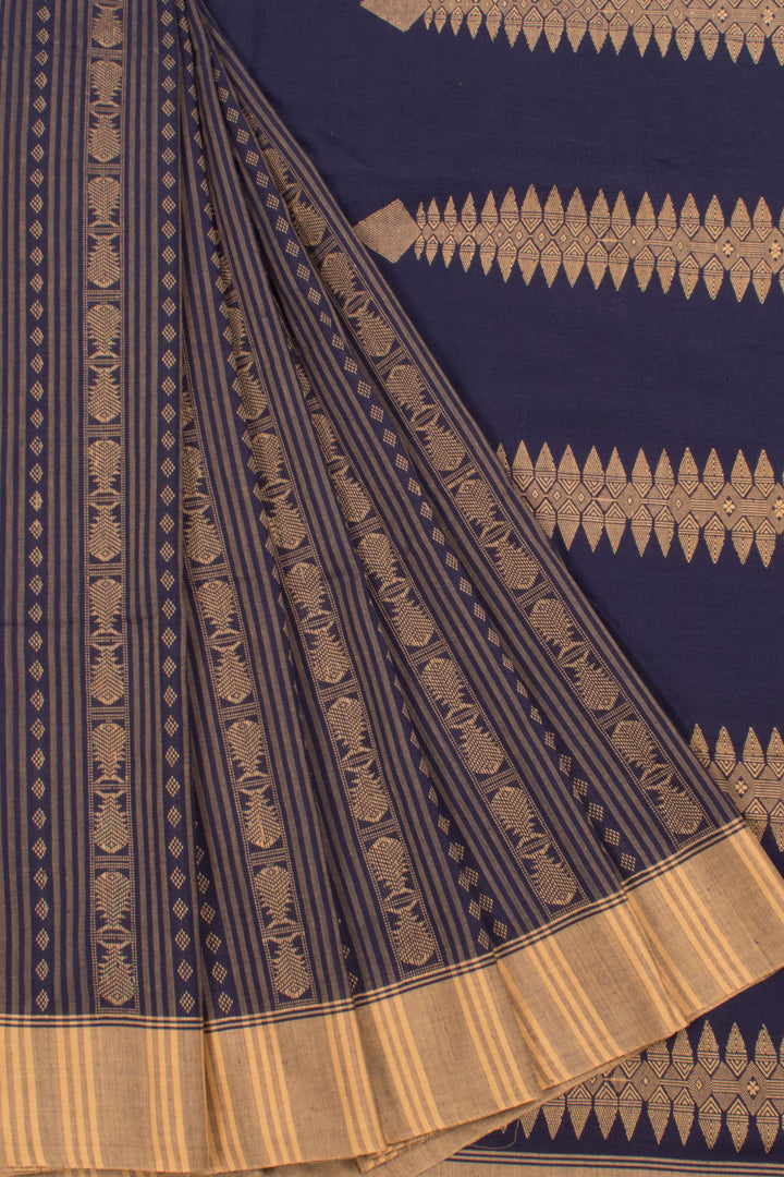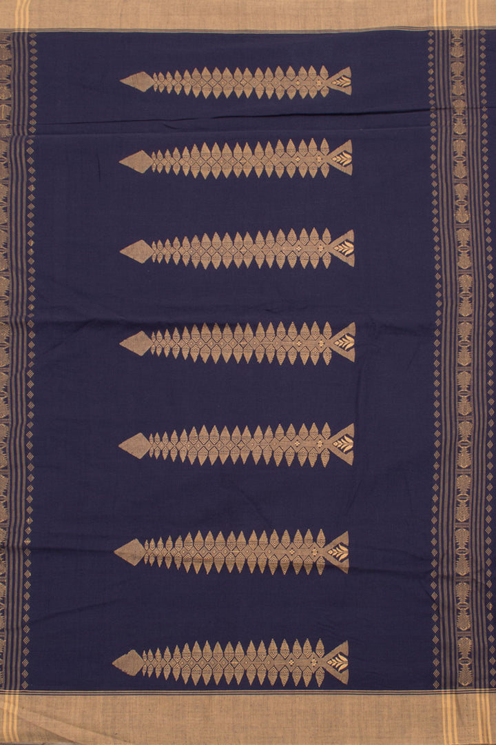 Handloom Bengal Cotton Saree with Fish, Stripes Design 10059327
