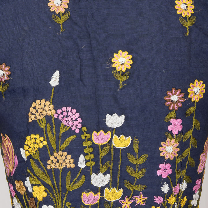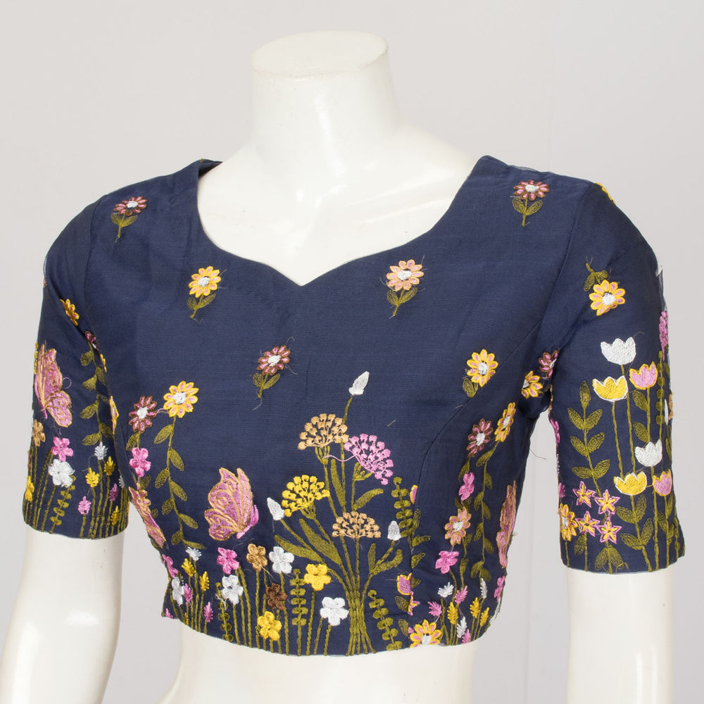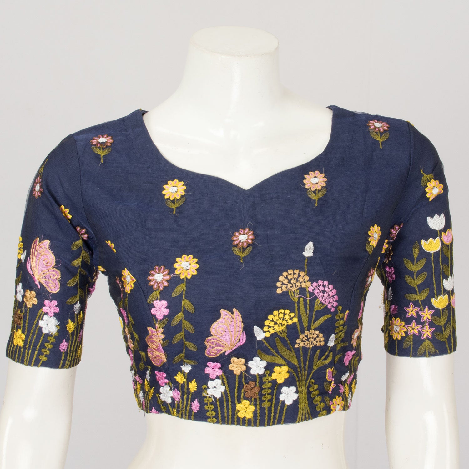Navy Blue Hand Embroidered Net Silk Blouse 10064910