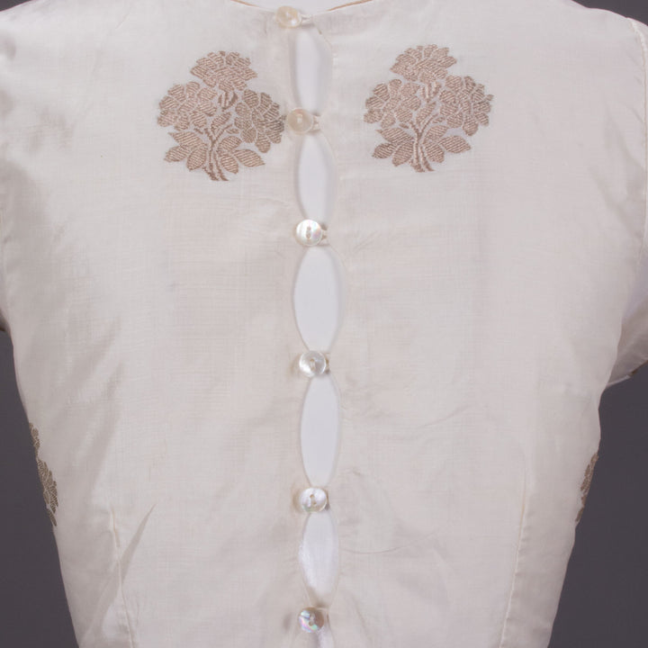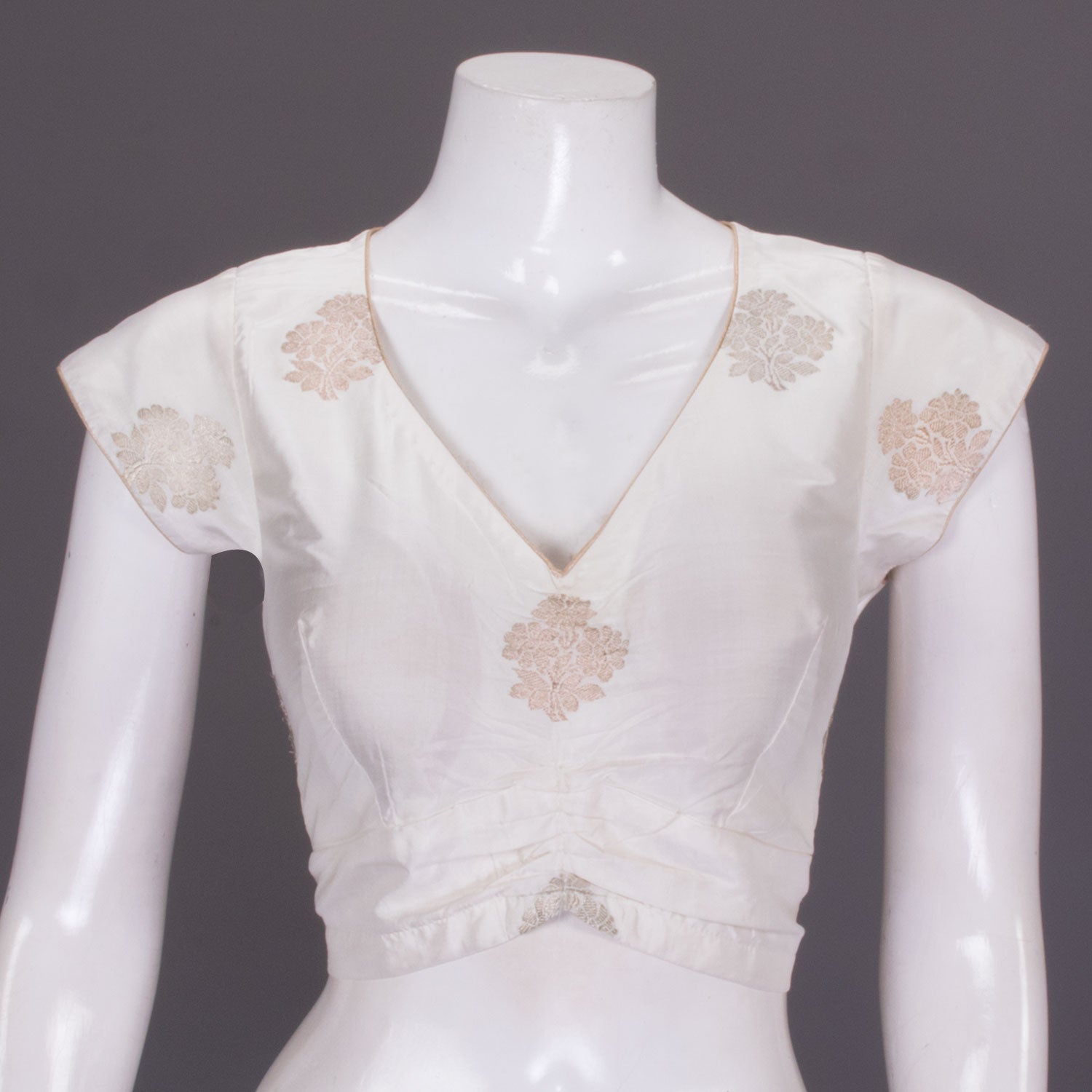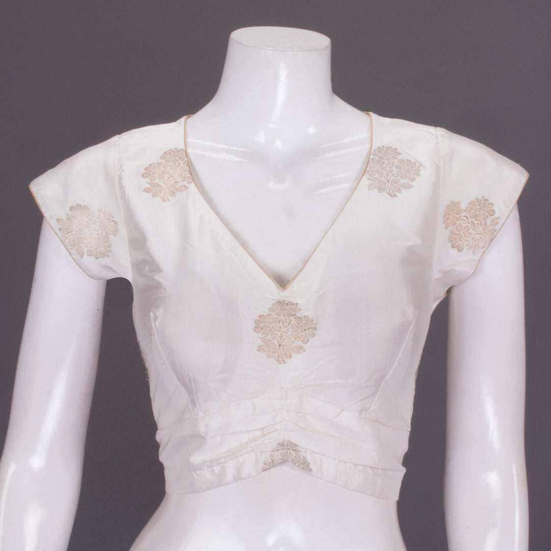 Off White Handcrafted Banarasi Silk Blouse 10064841