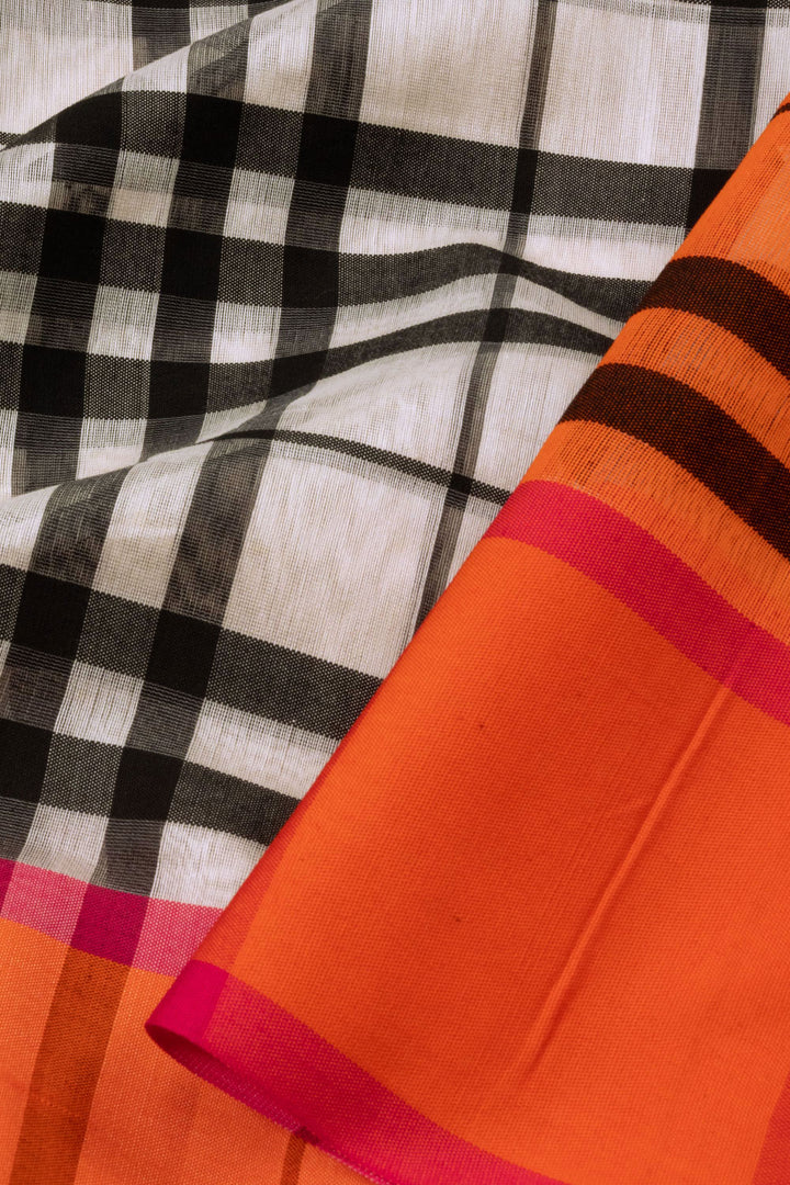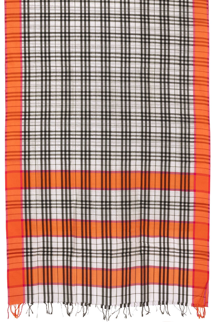 Off White Handloom Maheswari Silk Cotton Saree A stunningly unique saree, expertly crafted with lightweight yet durable handloom silk and cotton to make sure it withstands years of wear. Look beautiful and stay comfortable all day long.