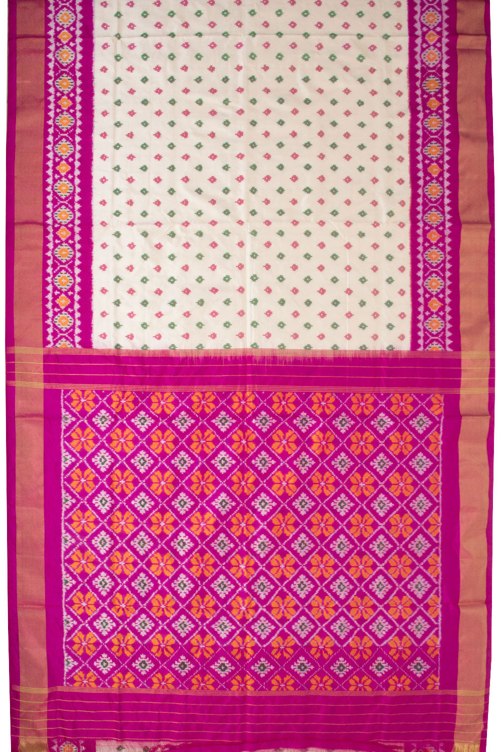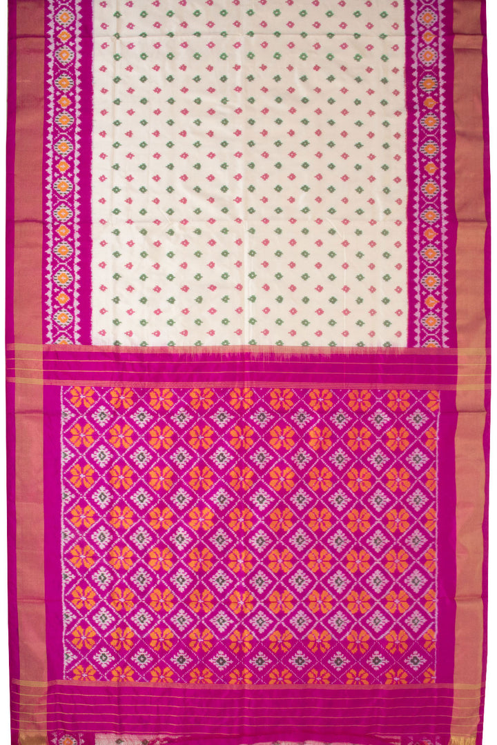 Off White Handloom Pochampally Ikat Silk Saree 10067938