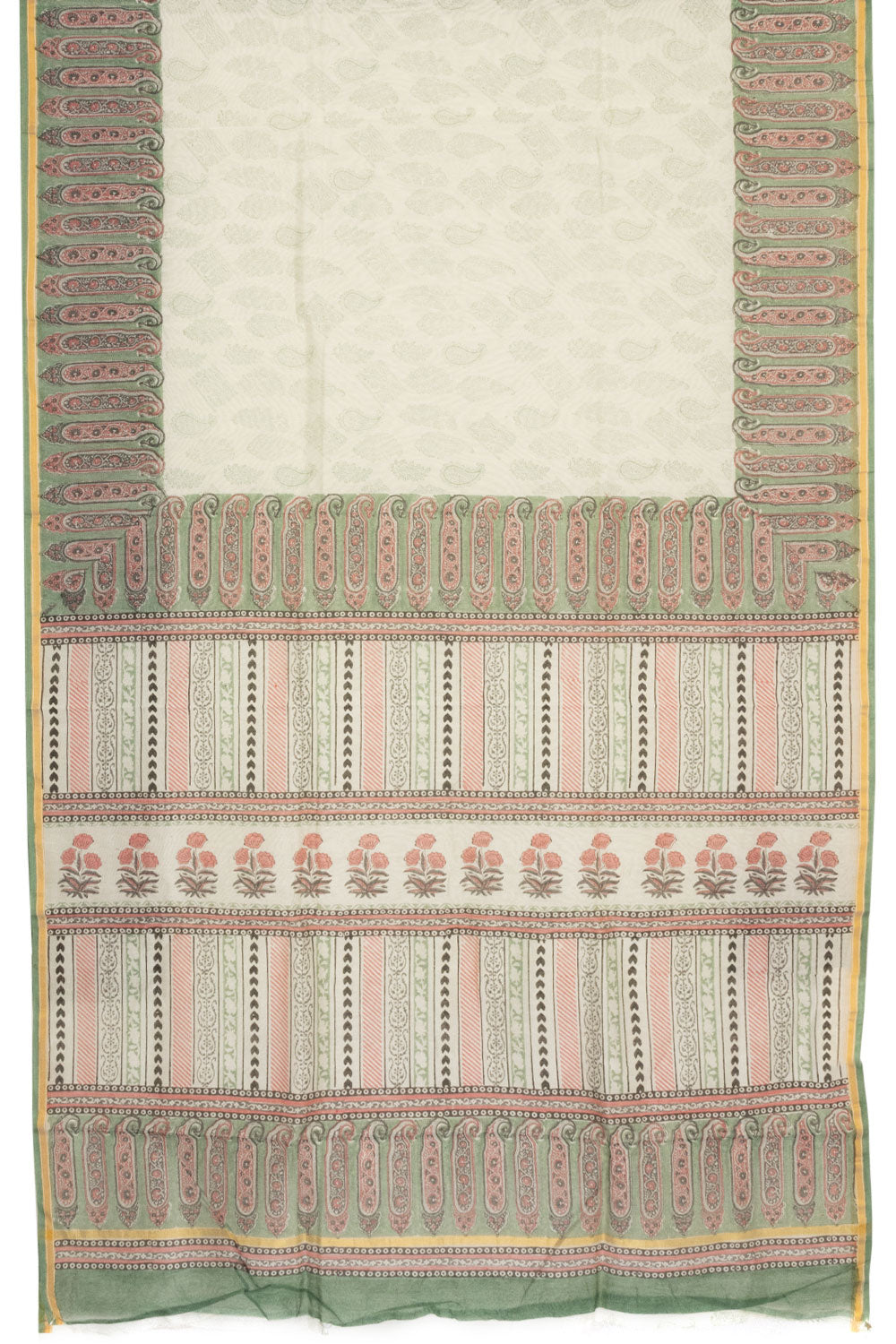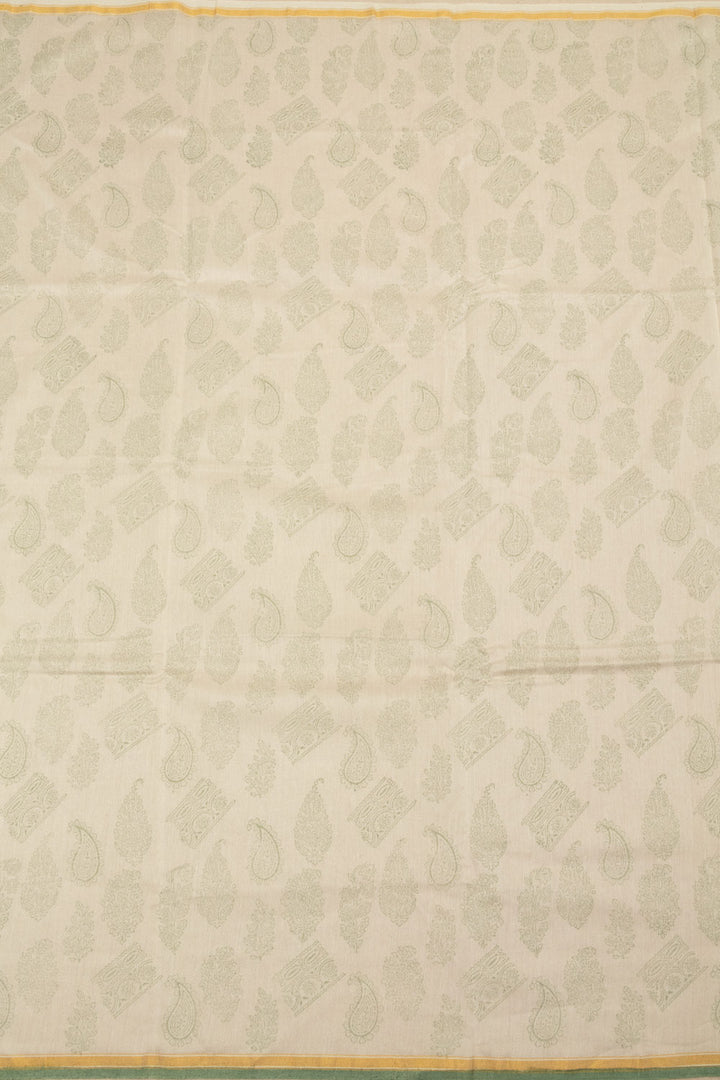 Off White Printed Handloom Chanderi Silk Cotton Saree 10063842