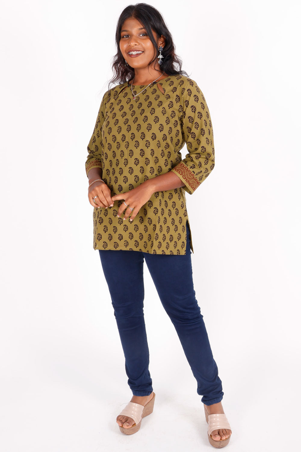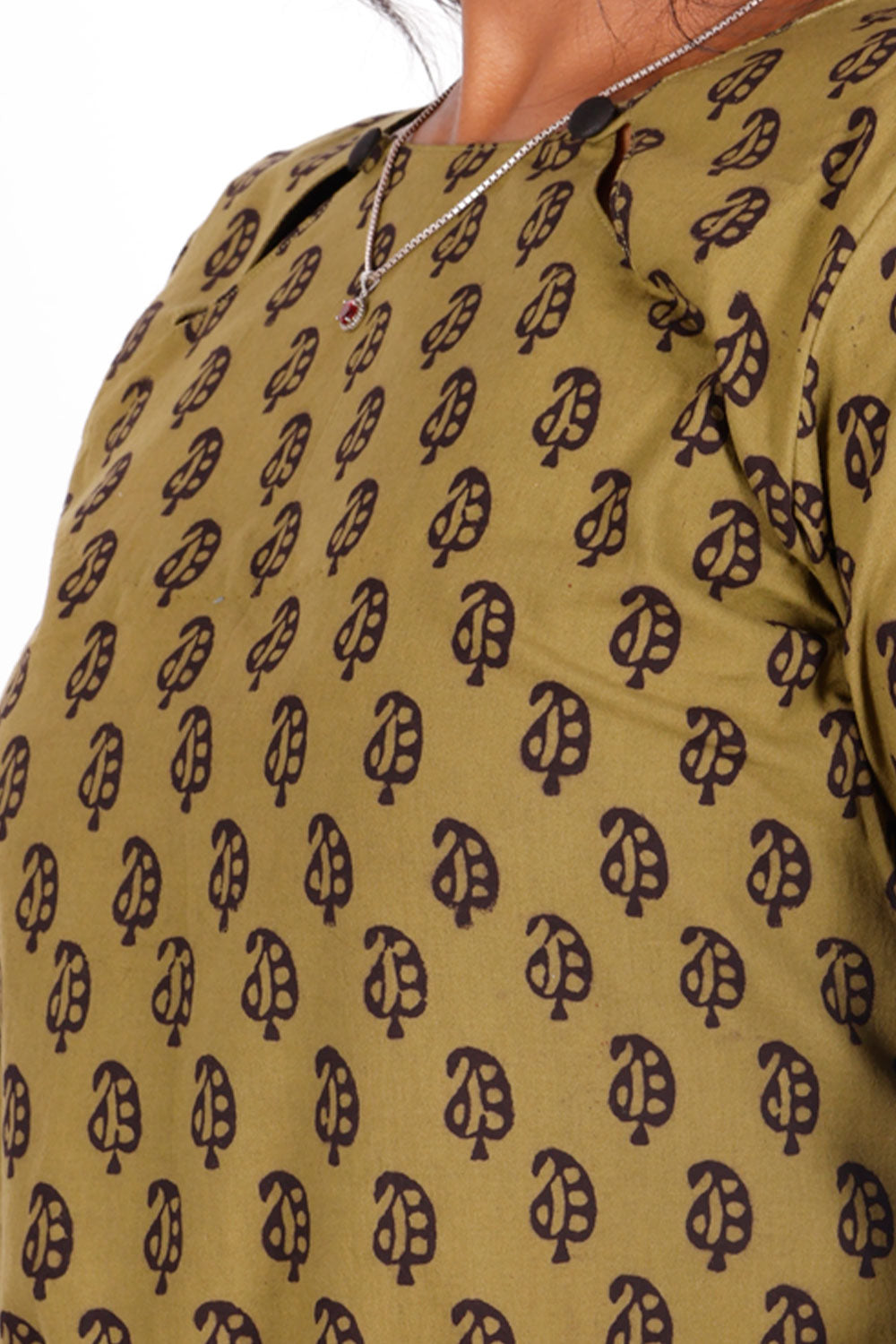 Old Moss Green Bagh Printed Cotton Kurti 10071564