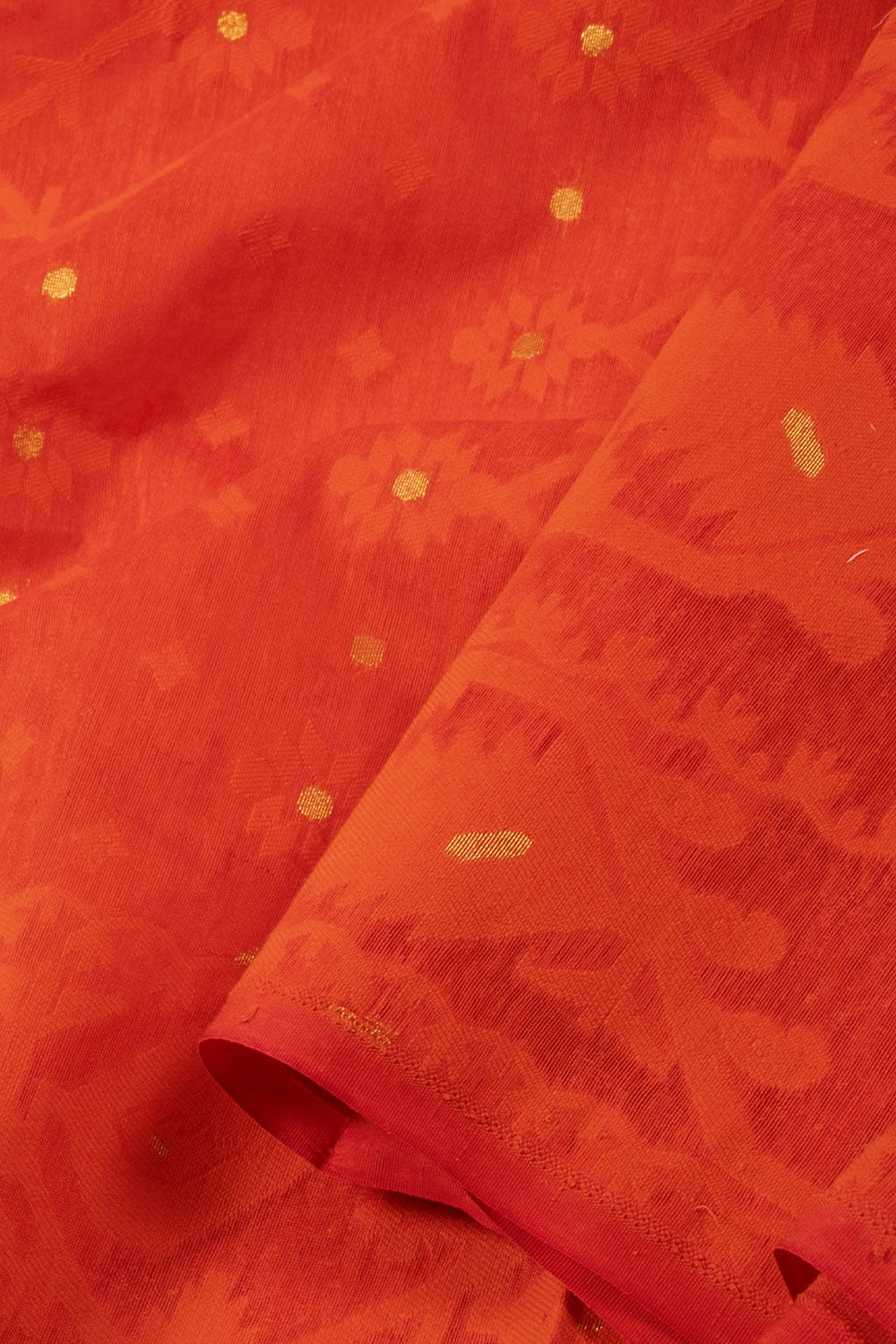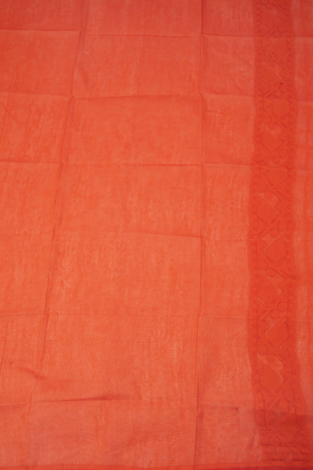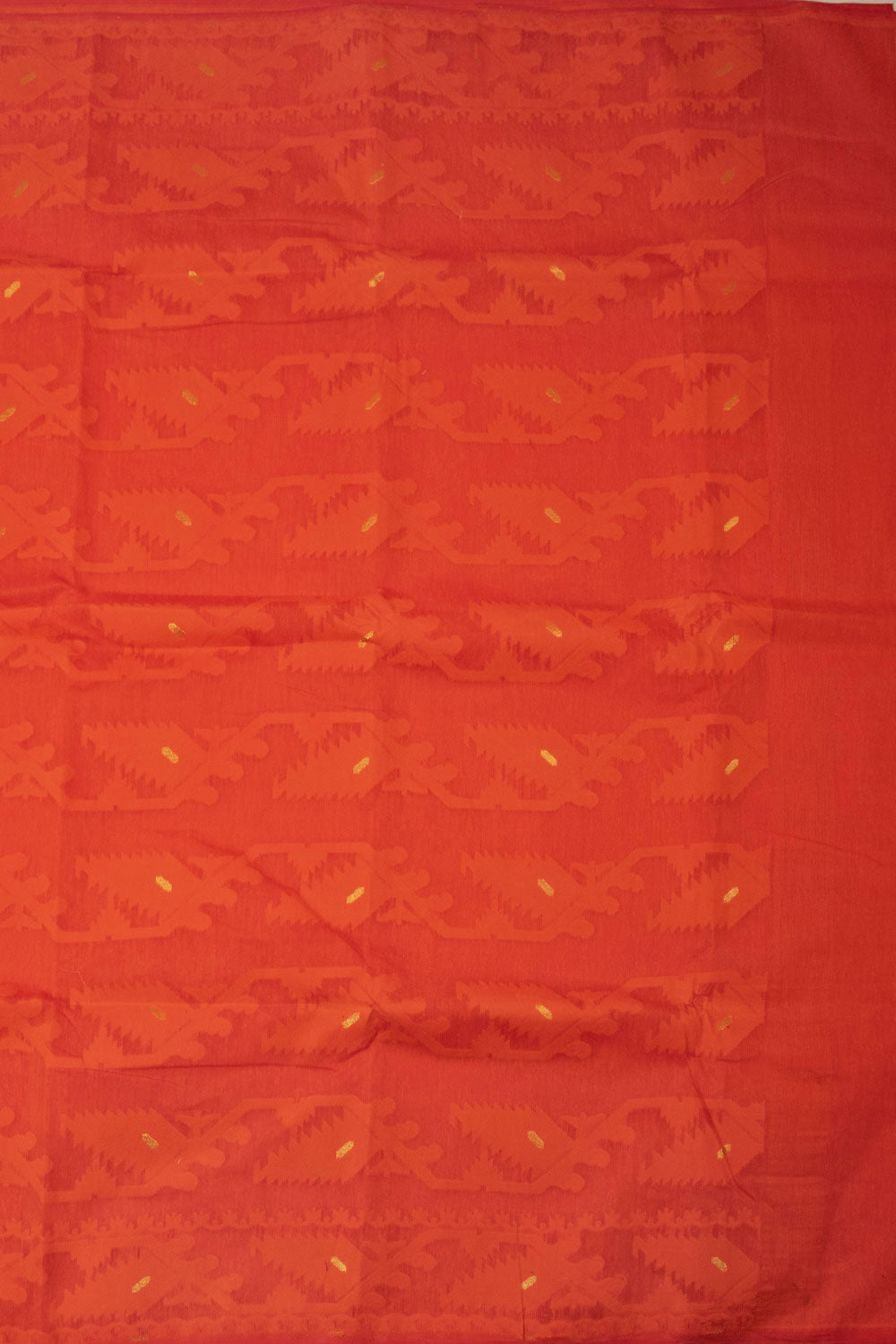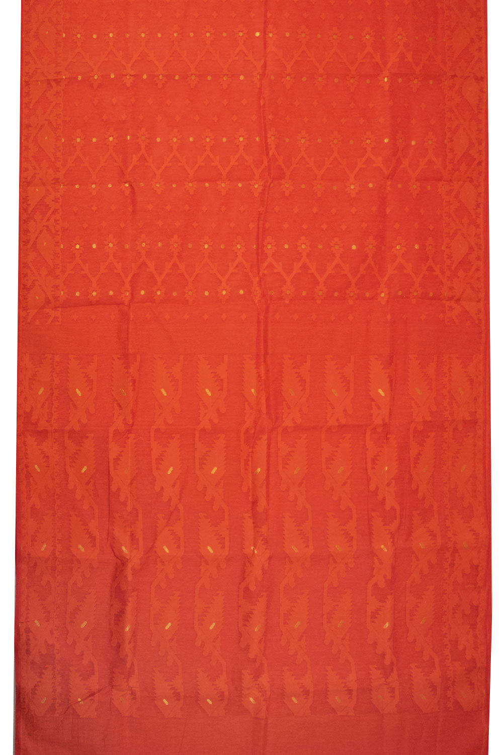 Orange Handloom Jamdani Style Cotton Saree with Blouse 10074372