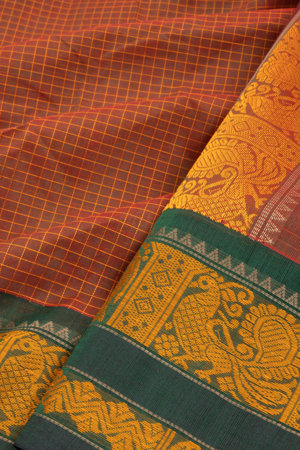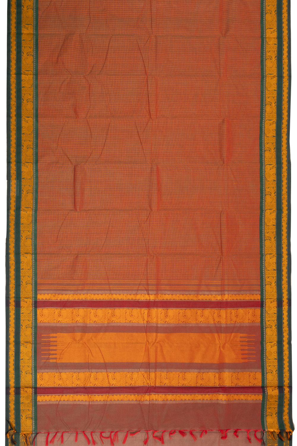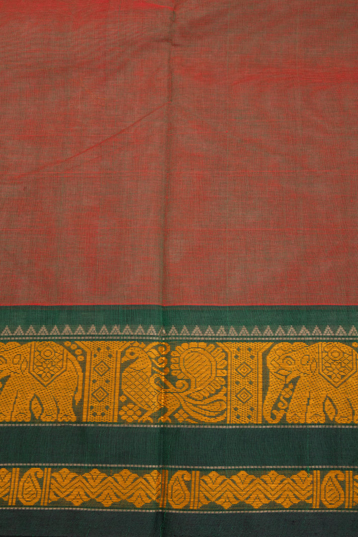 Experience the luxurious feel of Kanchi cotton with this exquisite handloom saree. The softness and smoothness of the fabric will leave you in awe. Elevate your wardrobe with this masterpiece.
