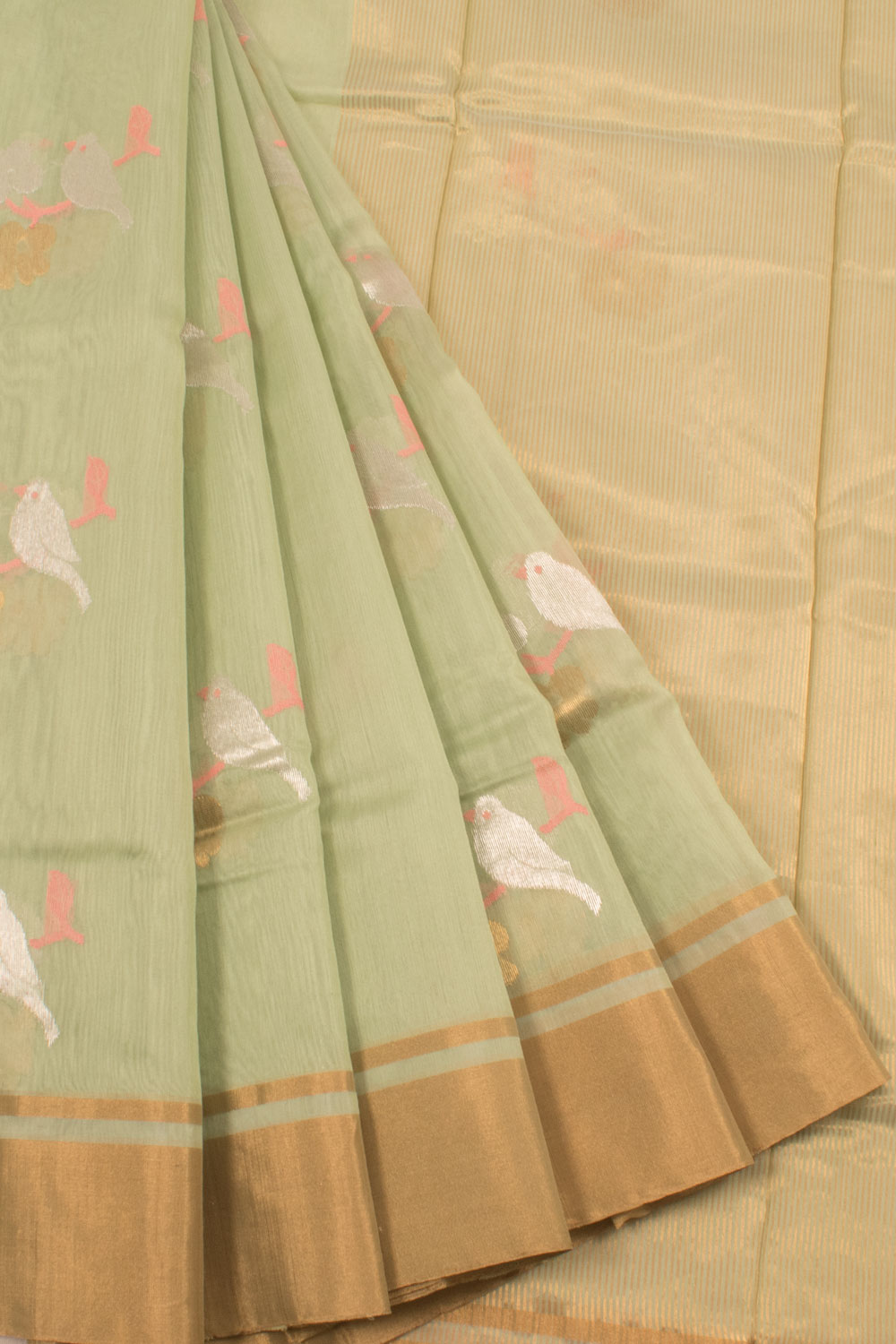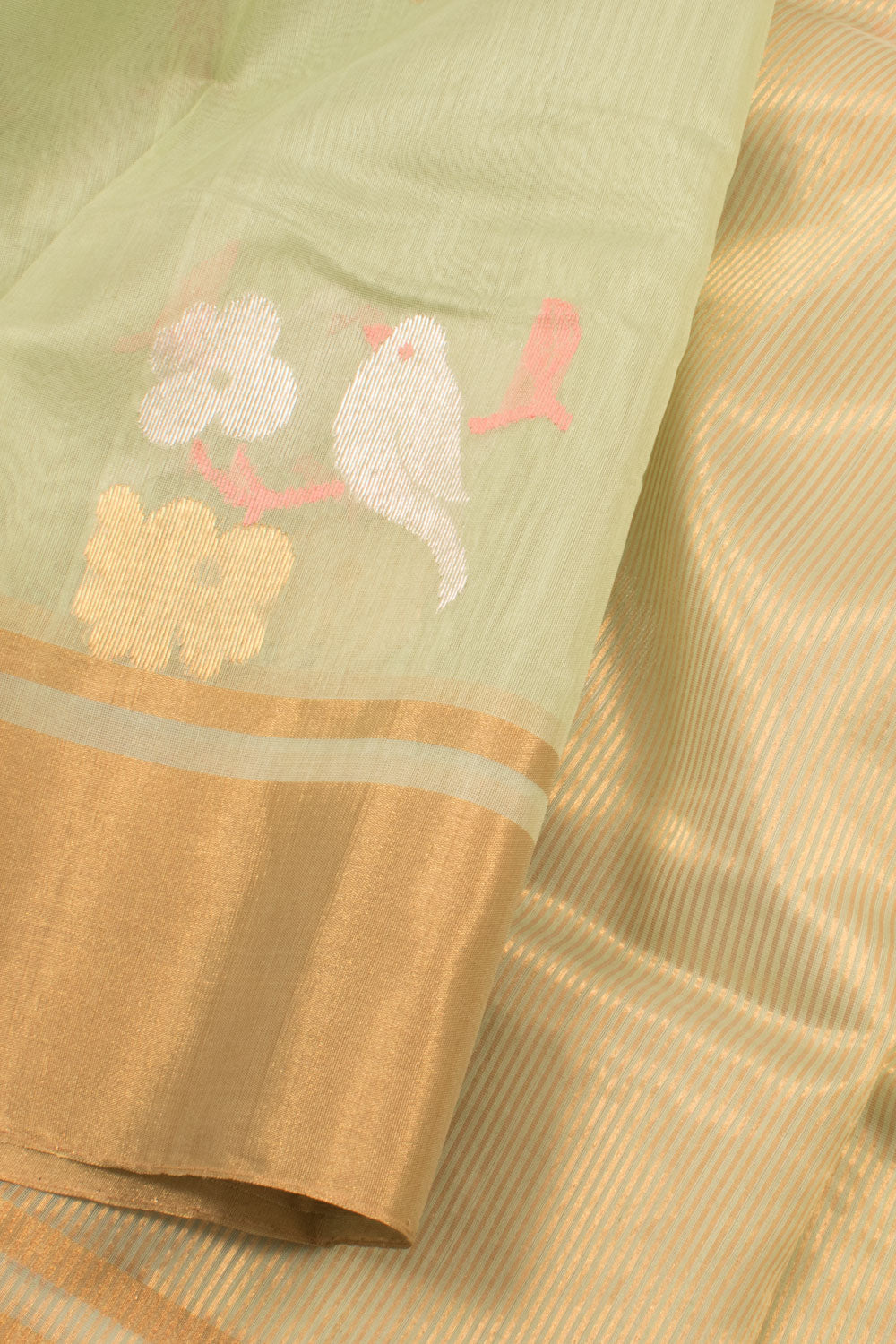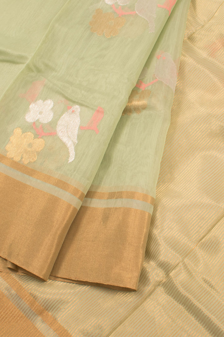 Pastel Green Handloom Chanderi Silk Cotton Saree 10059680