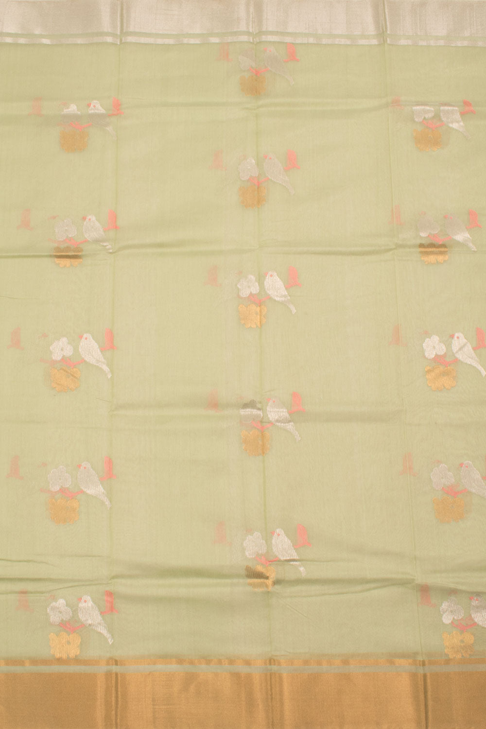 Handwoven Chanderi Silk Cotton Saree with Floral, Bird Motifs and Zari Border 10059680