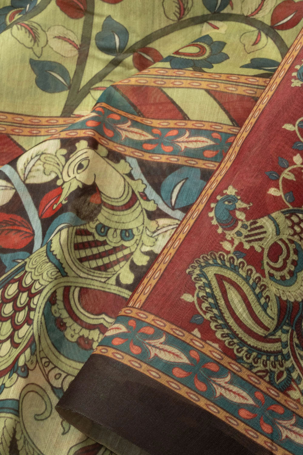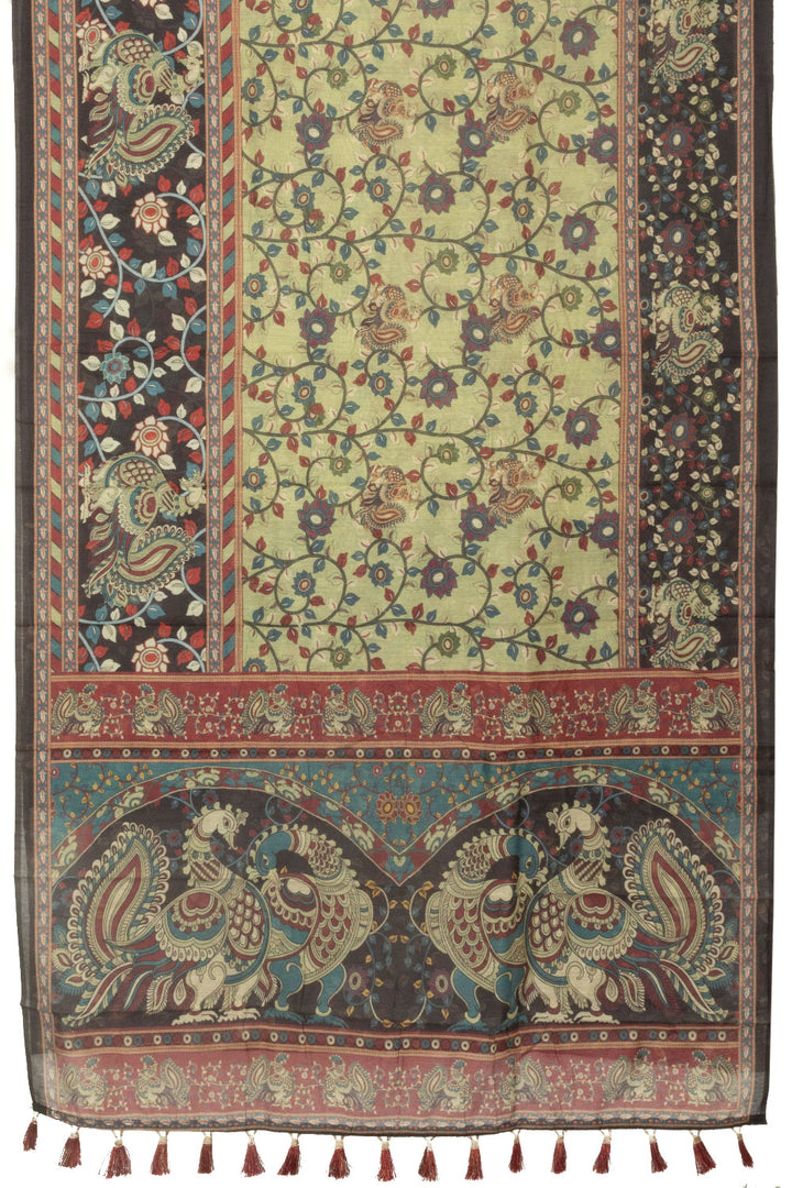 Pastel Green Printed Kalamkari Malai Cotton Saree 10064649