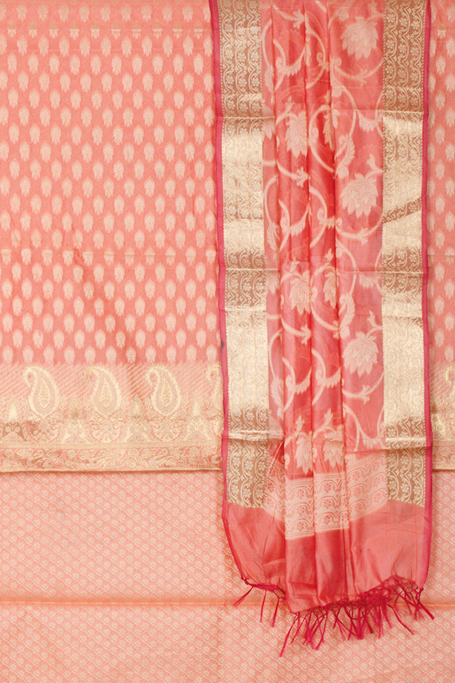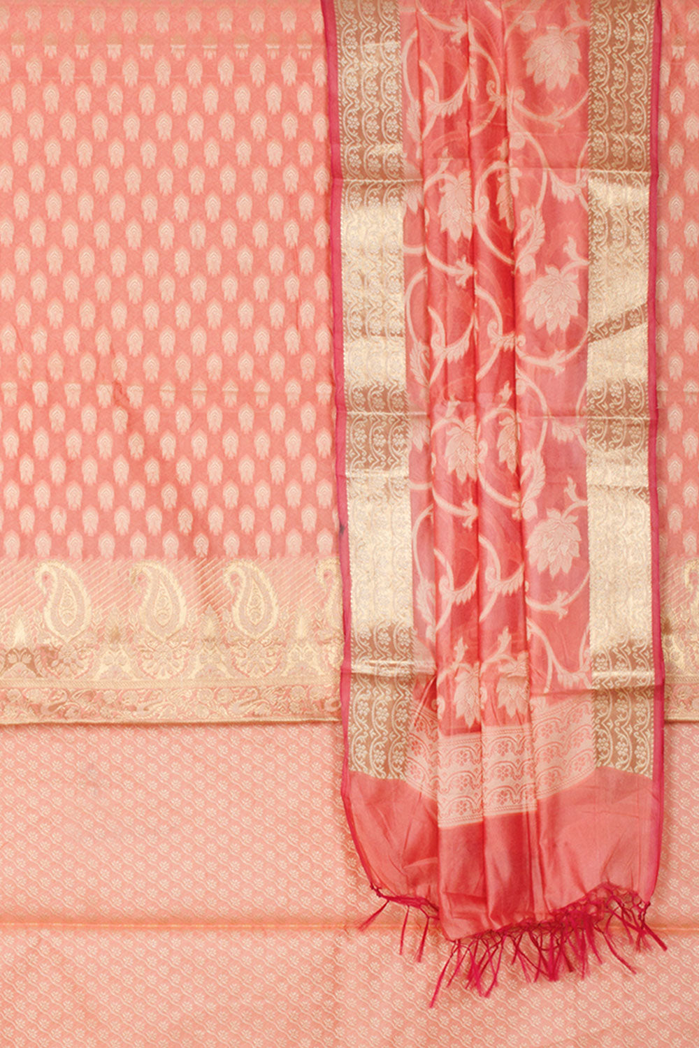 Banarasi Silk 3-Piece Salwar Suit Material With Floral Motifs and Paisley Design 10061156