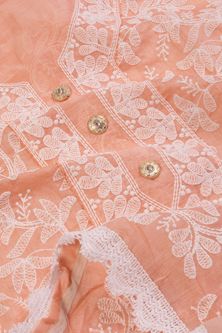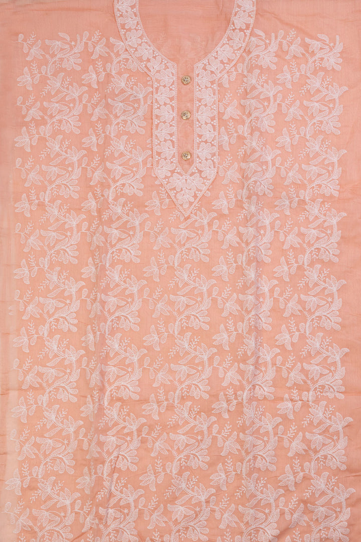 Peach Embroidered Silk 3-Piece Salwar Suit Material 10071610
