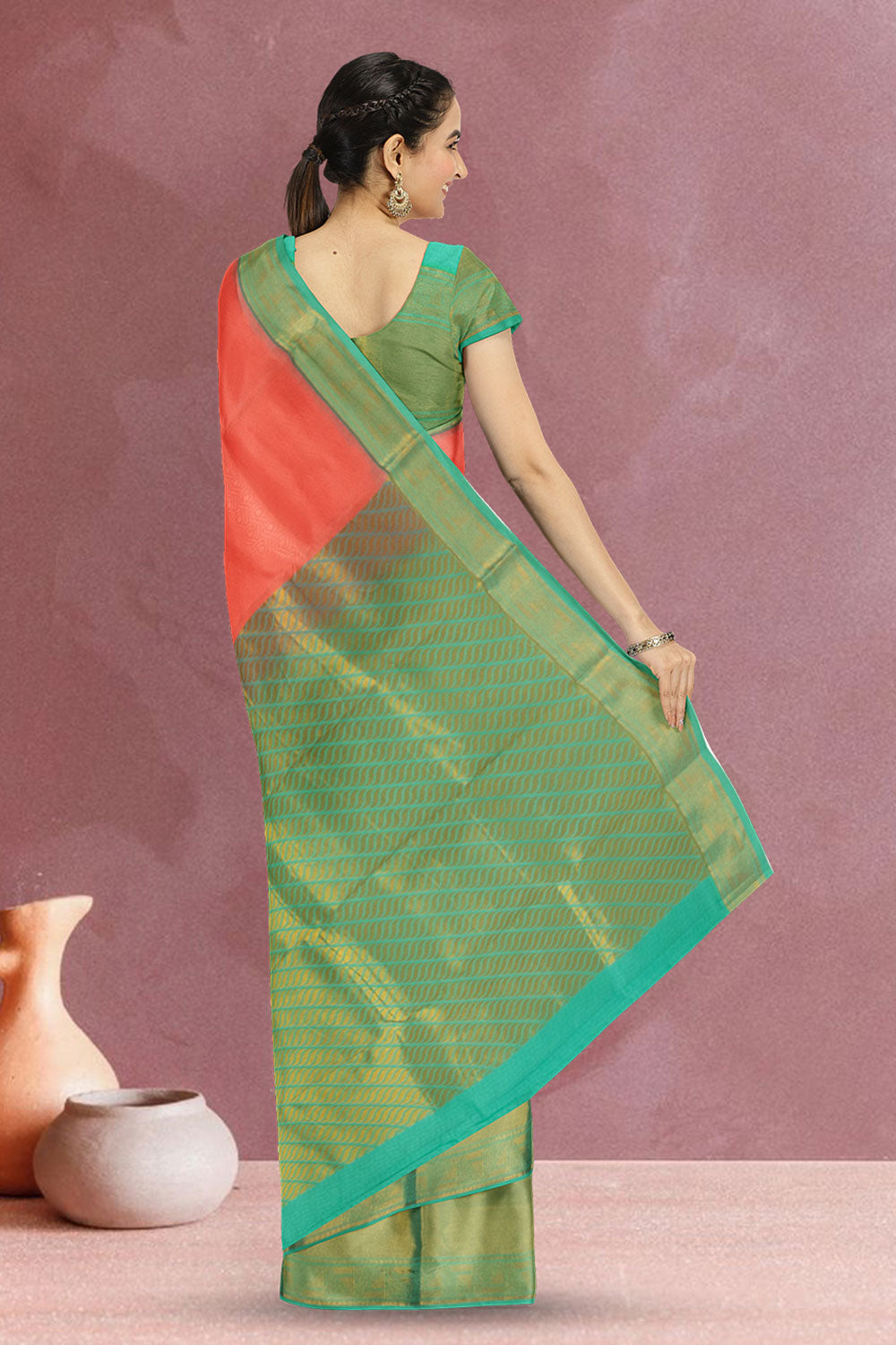 Peach Handloom Kanjivaram Silk Saree 10073838