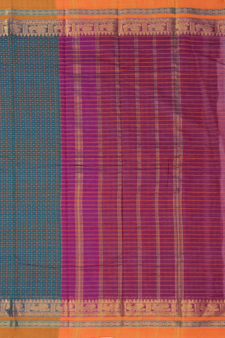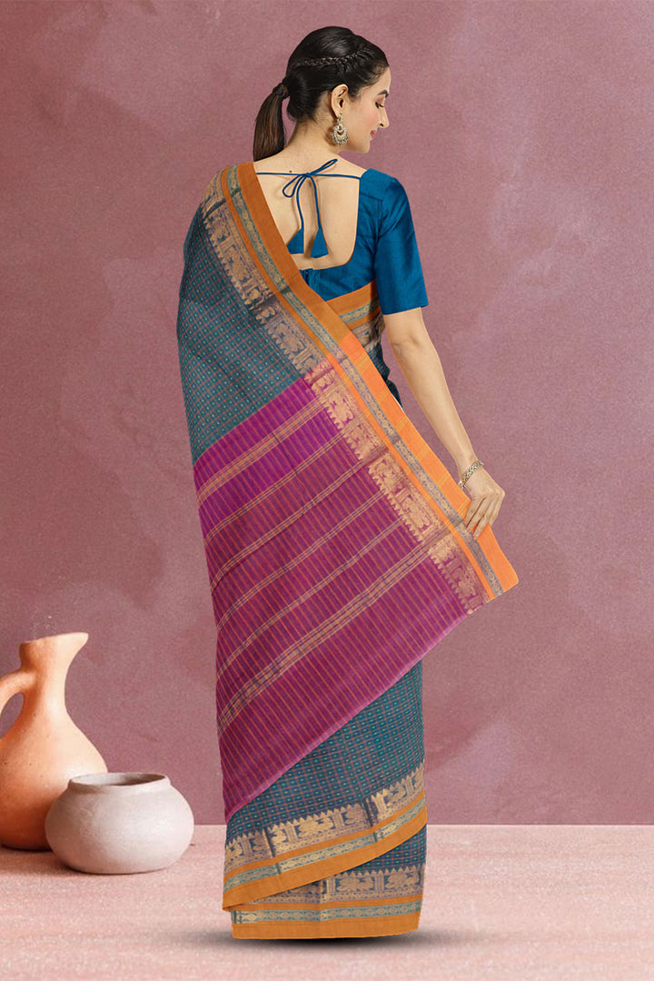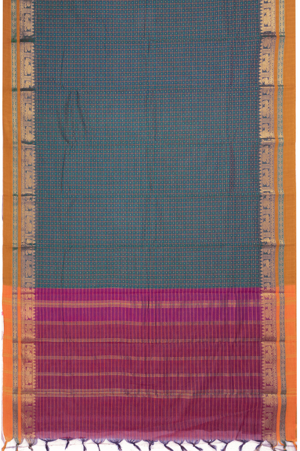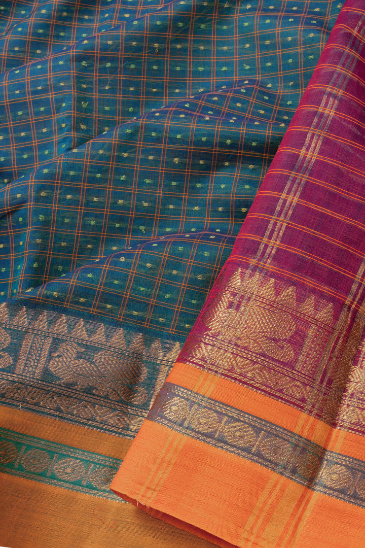 Peacock Blue Thousand Buttas Chettinad Cotton Saree 10073625