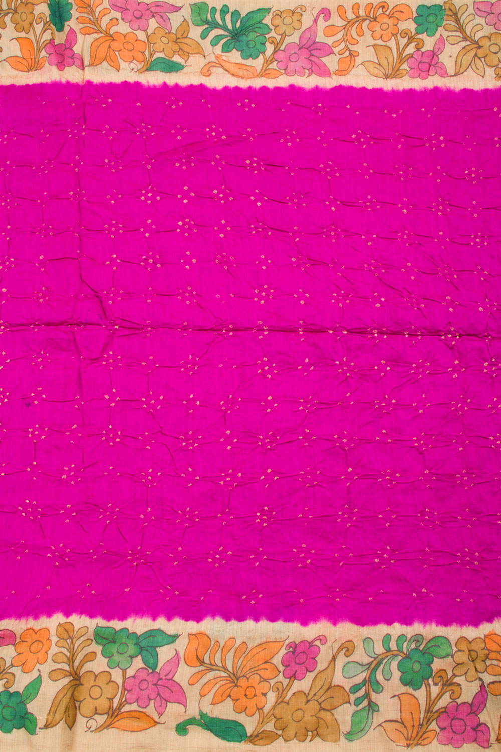 Magenta Pen Kalamkari Bandhani Tussar Silk Saree 10060137