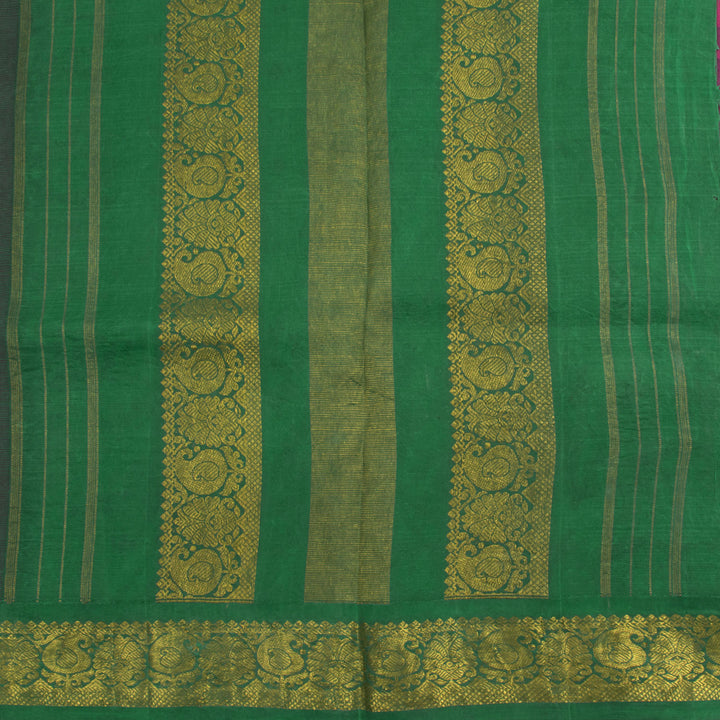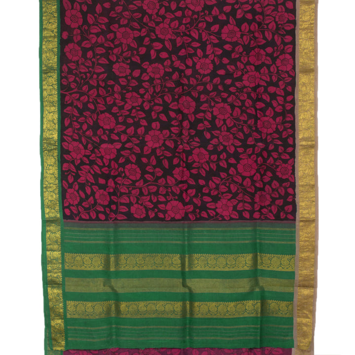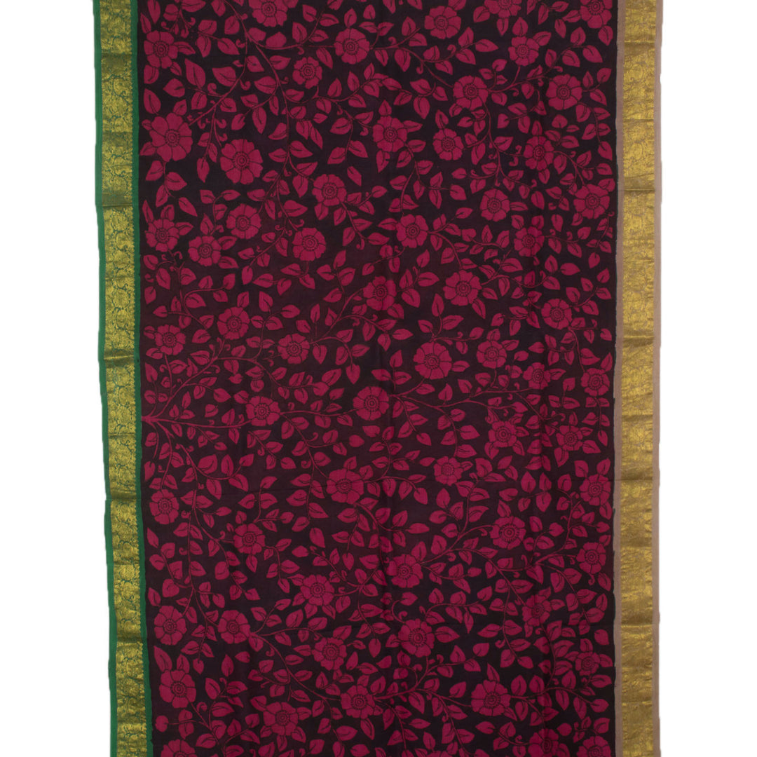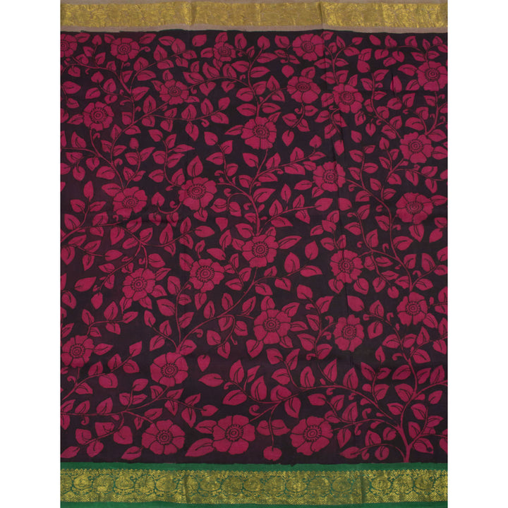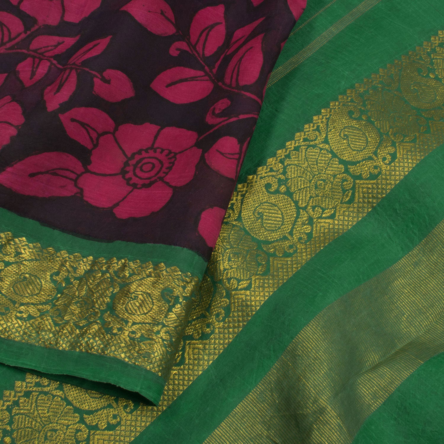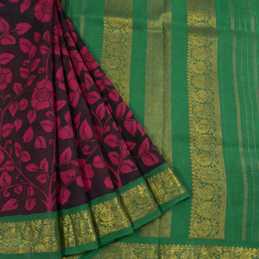 Hand Painted Pen Kalamkari Pure Zari Korvai Kanjivaram Silk Saree with Floral Design and Ganga Jamuna Paisley Border 10055625