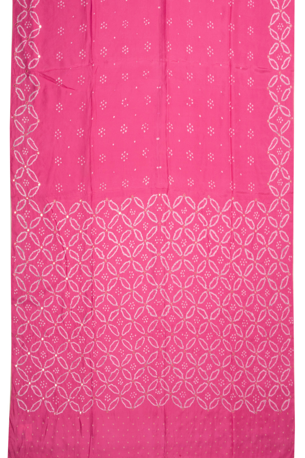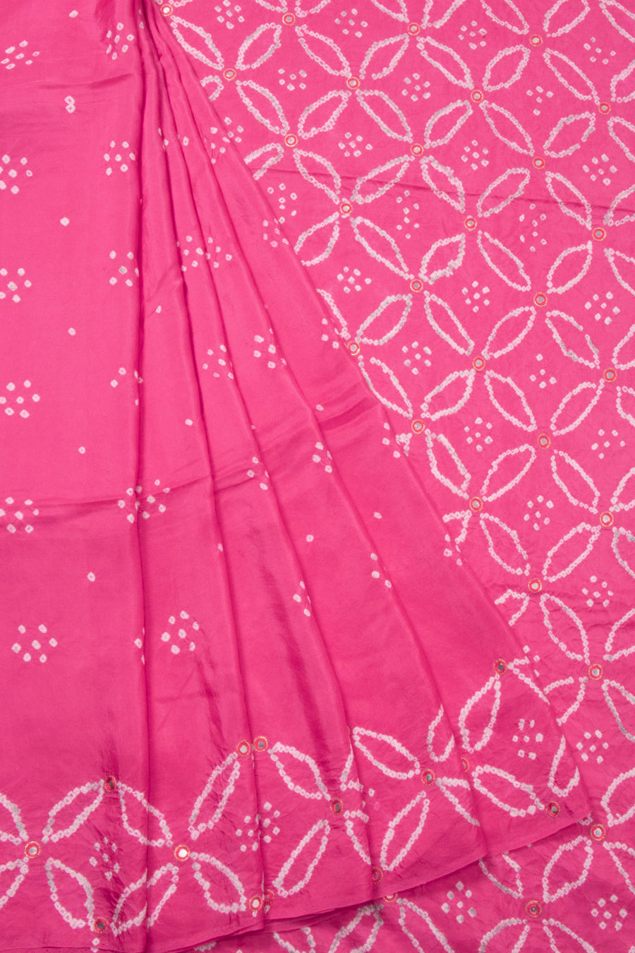 Pink Bandhani Mulberry Silk Saree With Mirror and Zari Embroidery 10073069