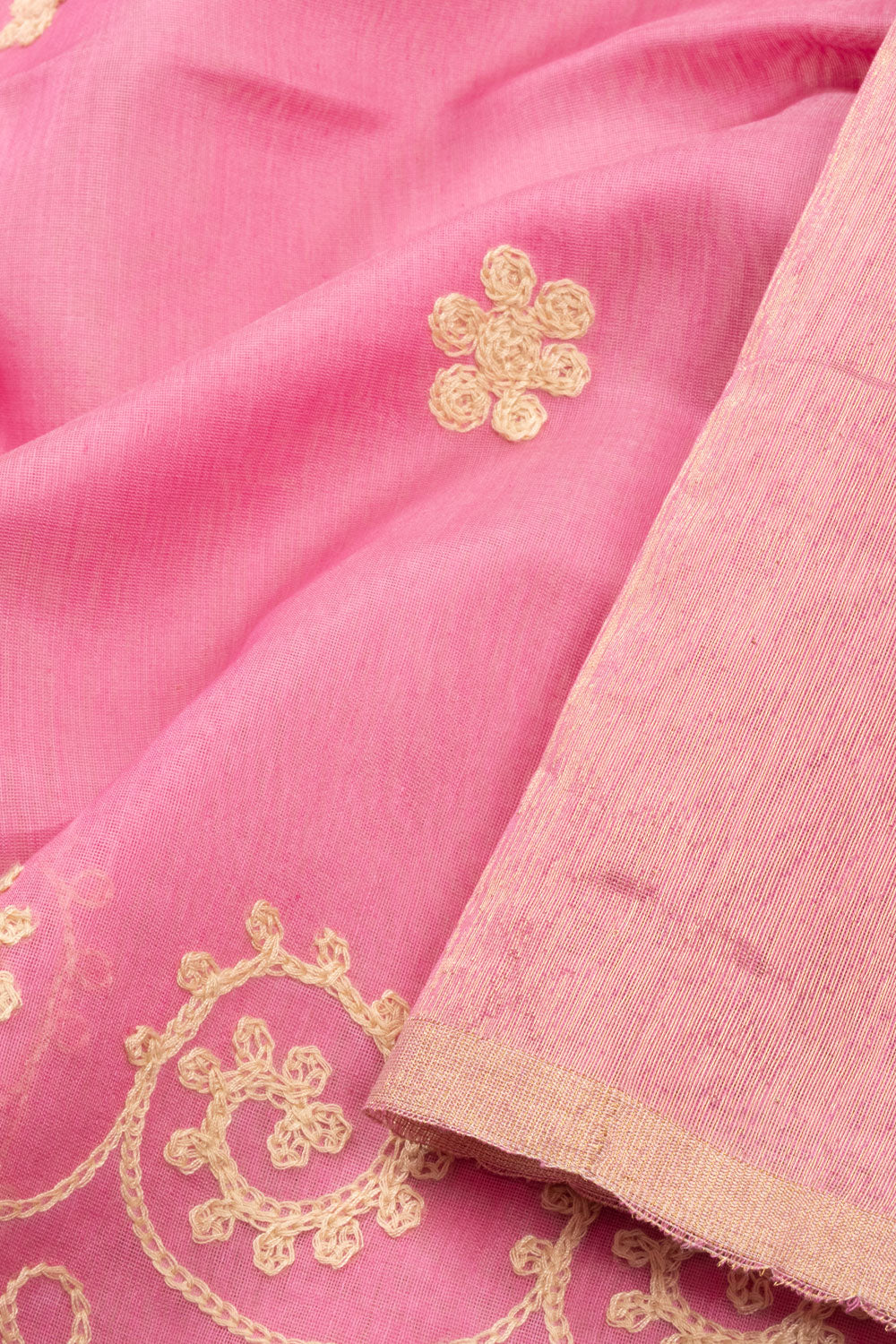Pink Embroidered Chanderi Saree with Tissue Pallu 10071116