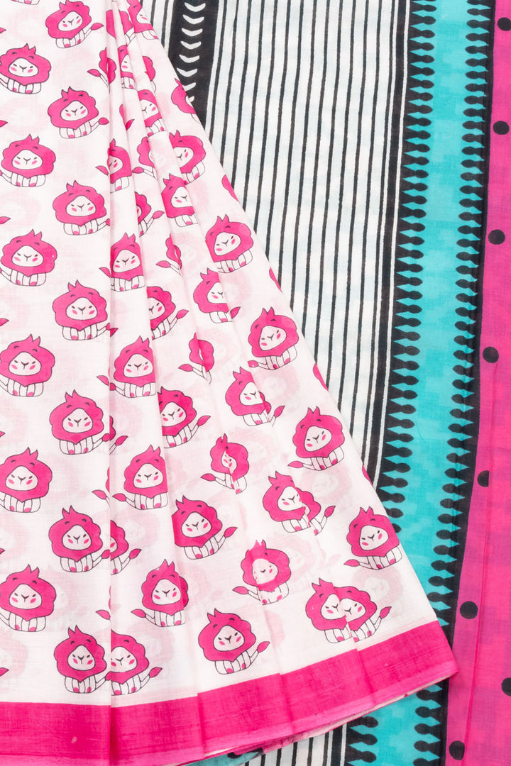 Indulge in the captivating charm of the Pink Hand Block Printed Cotton Saree. Adorned with detailed fish designs, this saree exudes elegance and feminine allure. For a chic and irresistible ensemble, pair it with the coordinating Printed  Blouse. Elevate your fashion game with this essential saree and leave a lasting impression everywhere you go.