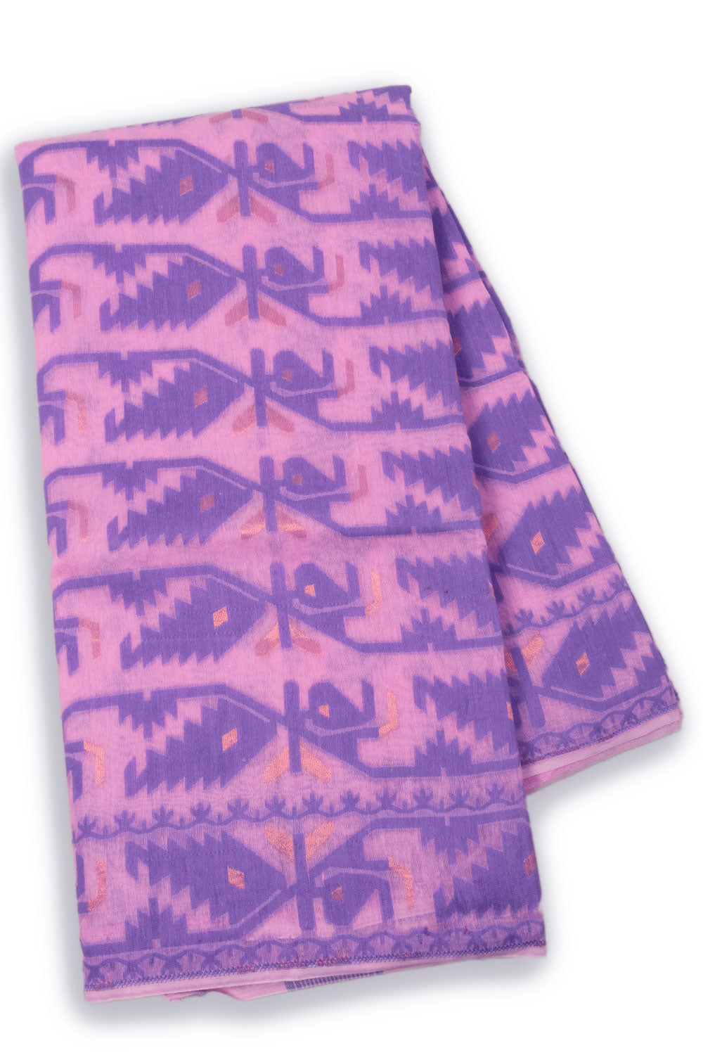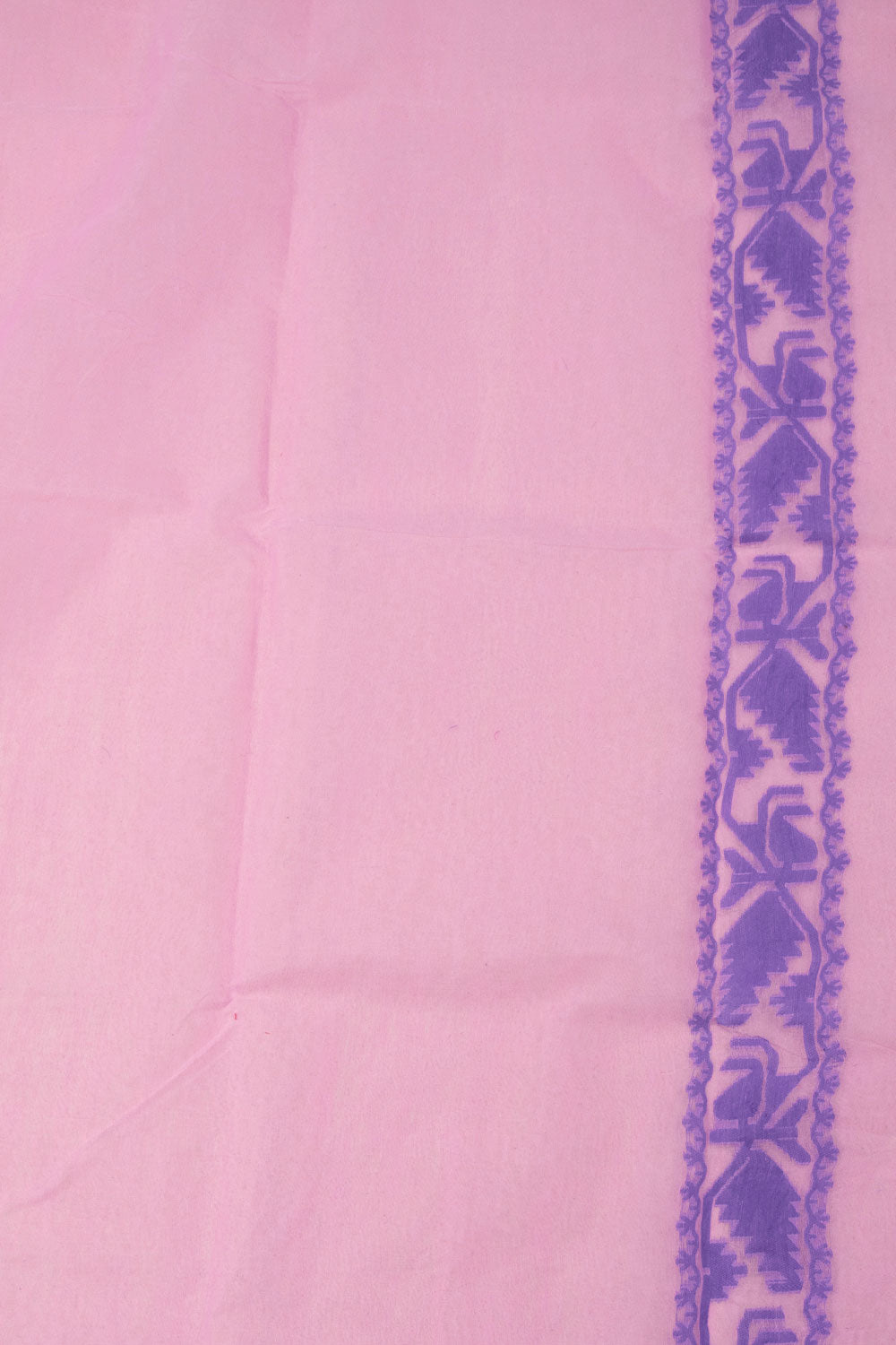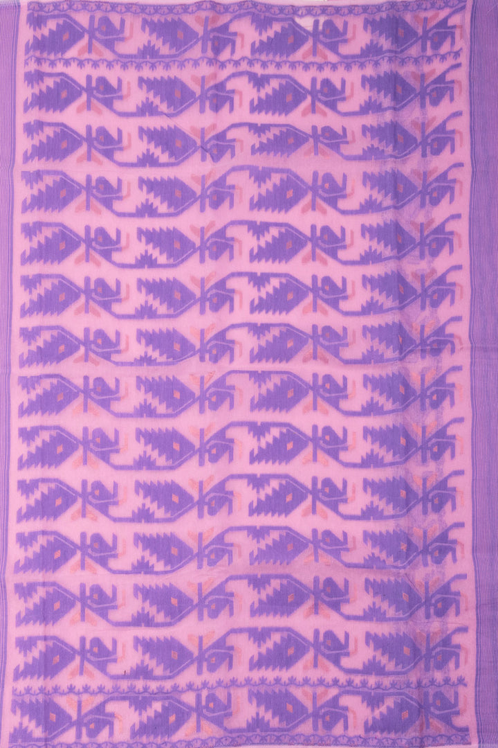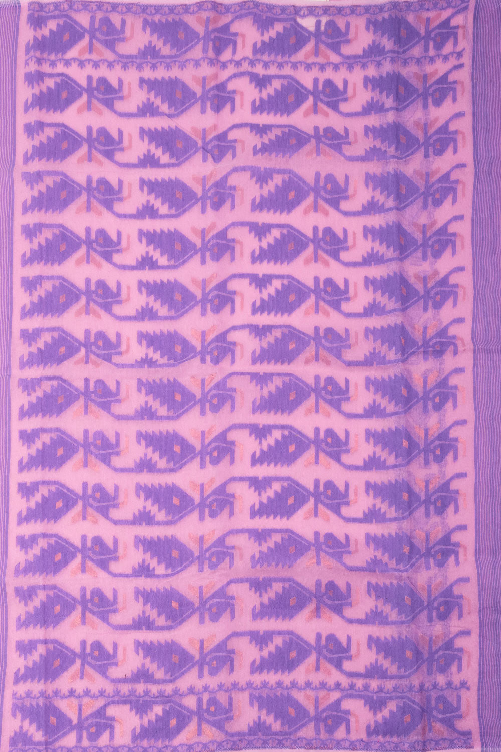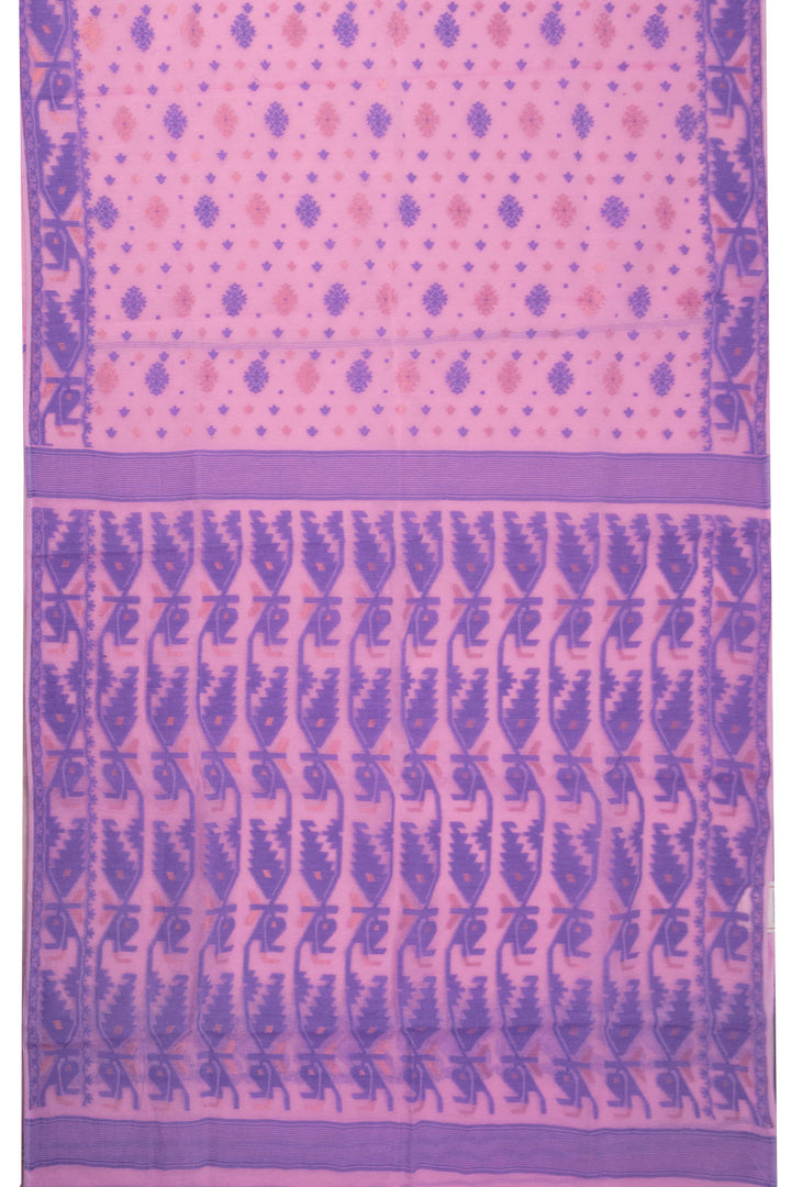 Pink Handloom Jamdani Style Cotton Saree with Blouse 10074223