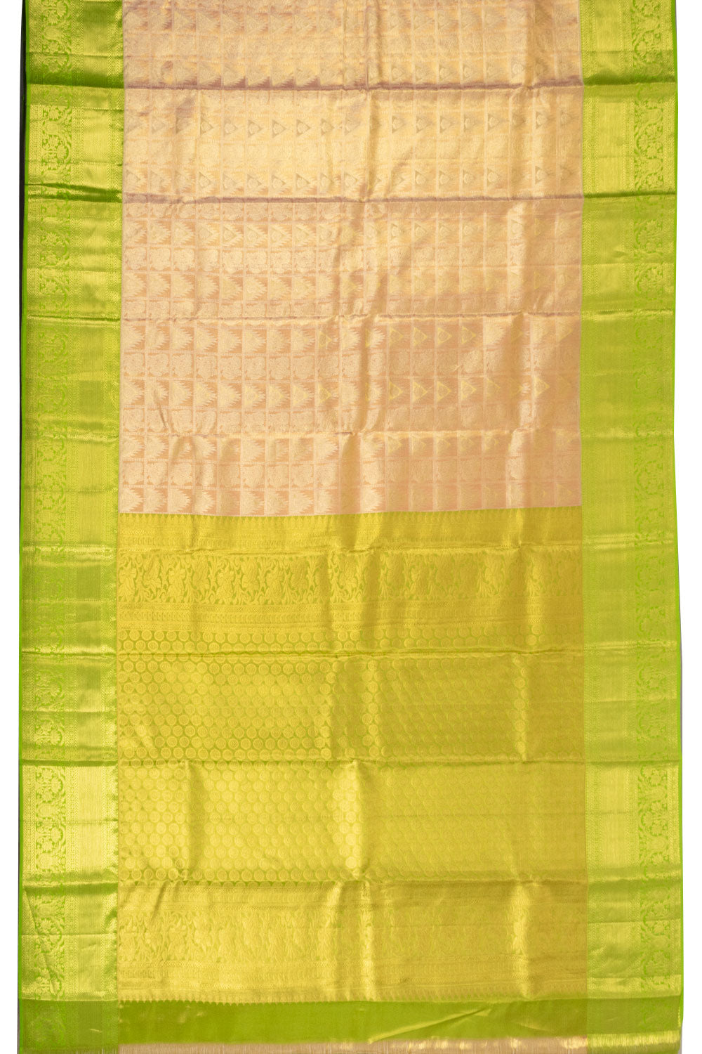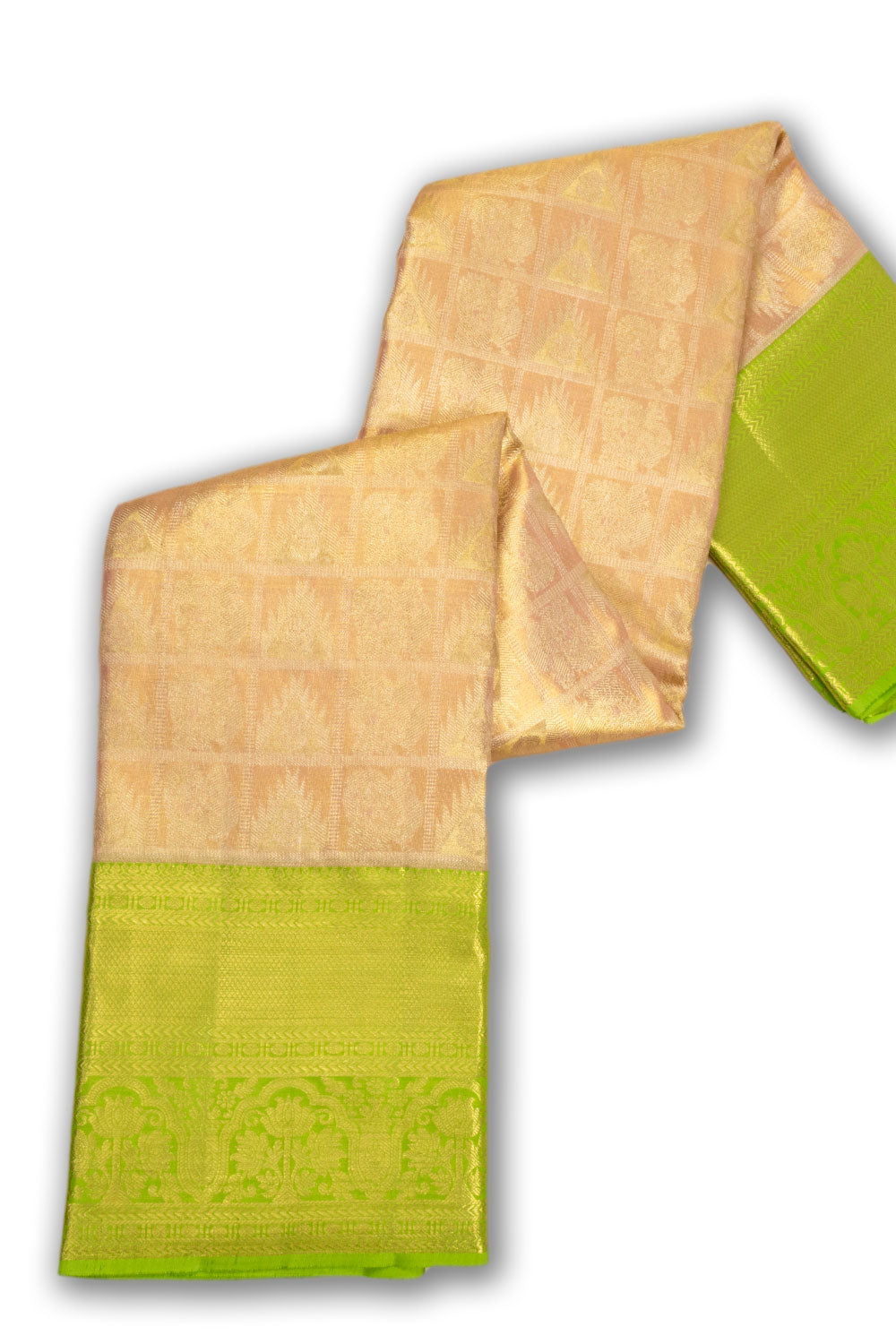- Pure Zari Work – Features authentic gold and silver zari motifs inspired by temple architecture, floral vines, and mythological depictions.